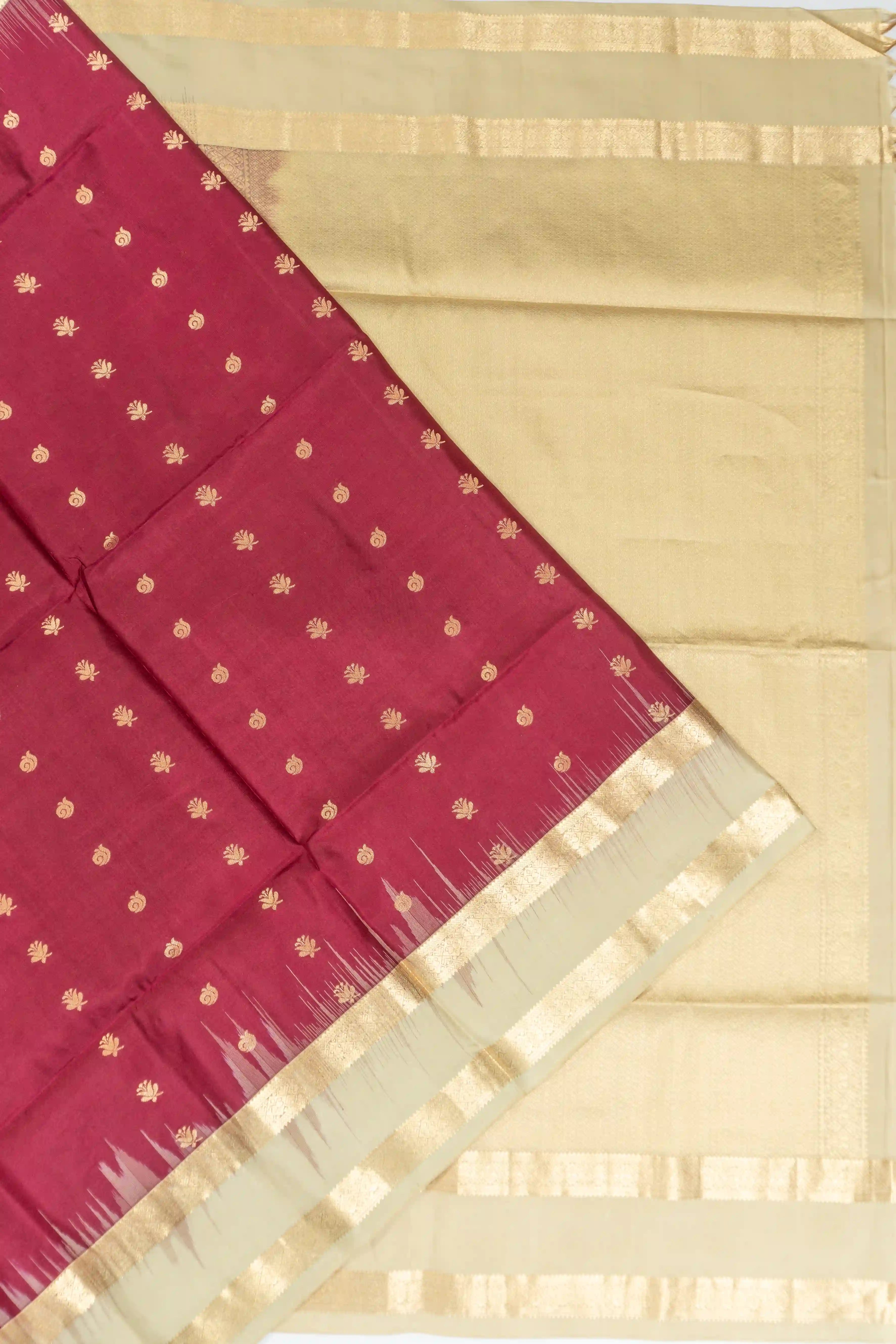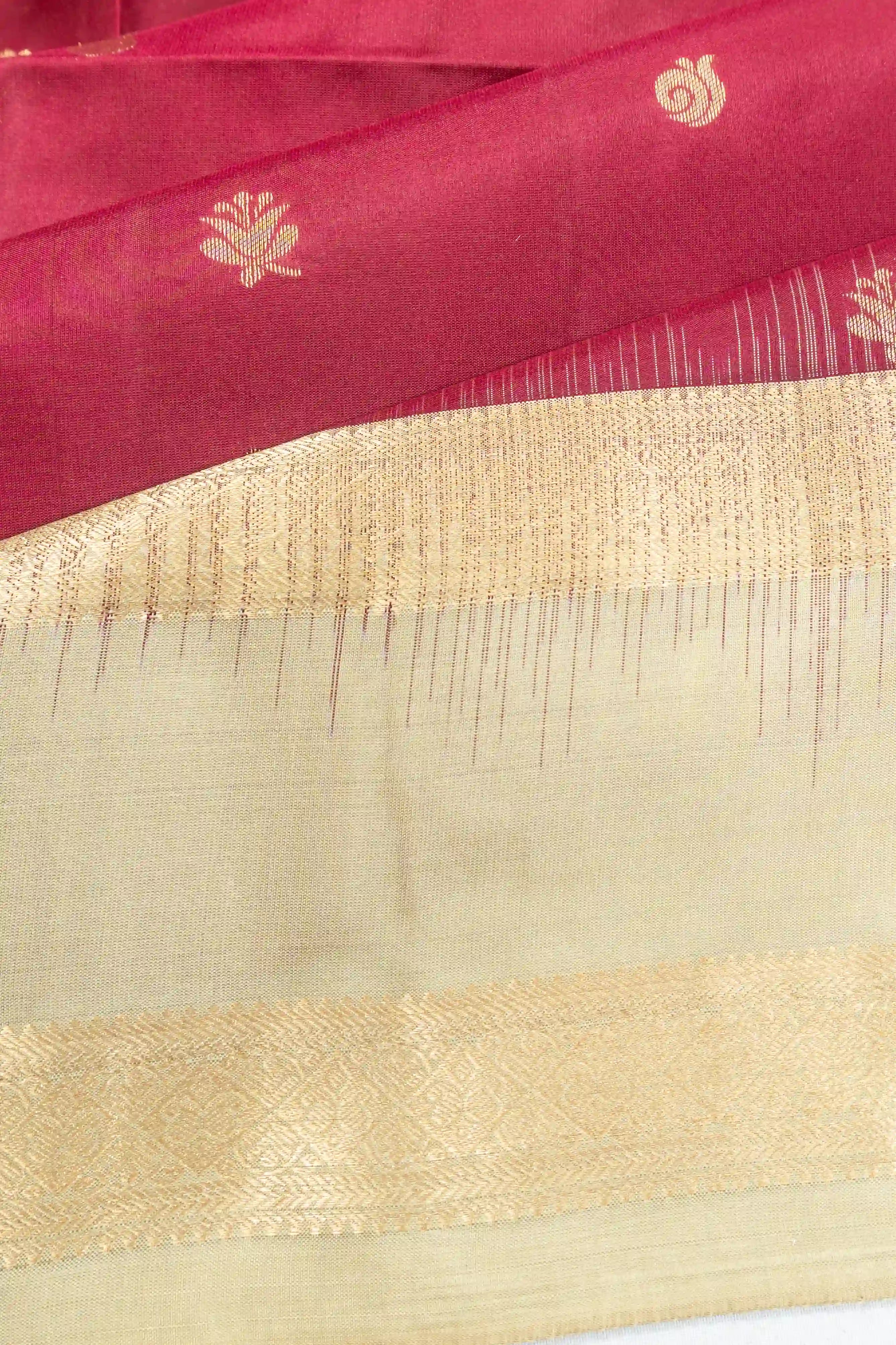 Taranga Kanchi Silk Butta Maroon Saree With Rettai Pettu Border