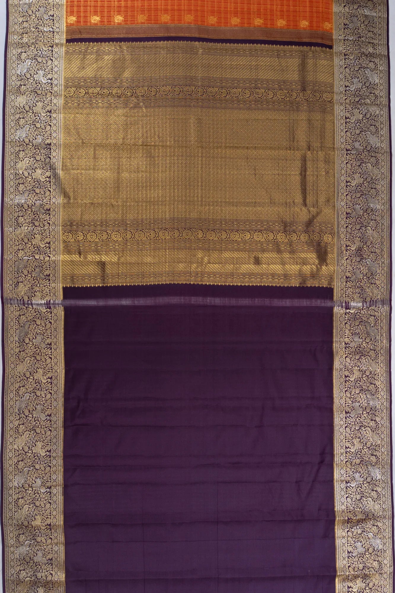 Taranga Kanchi Silk Checks And Butta Orange Saree
