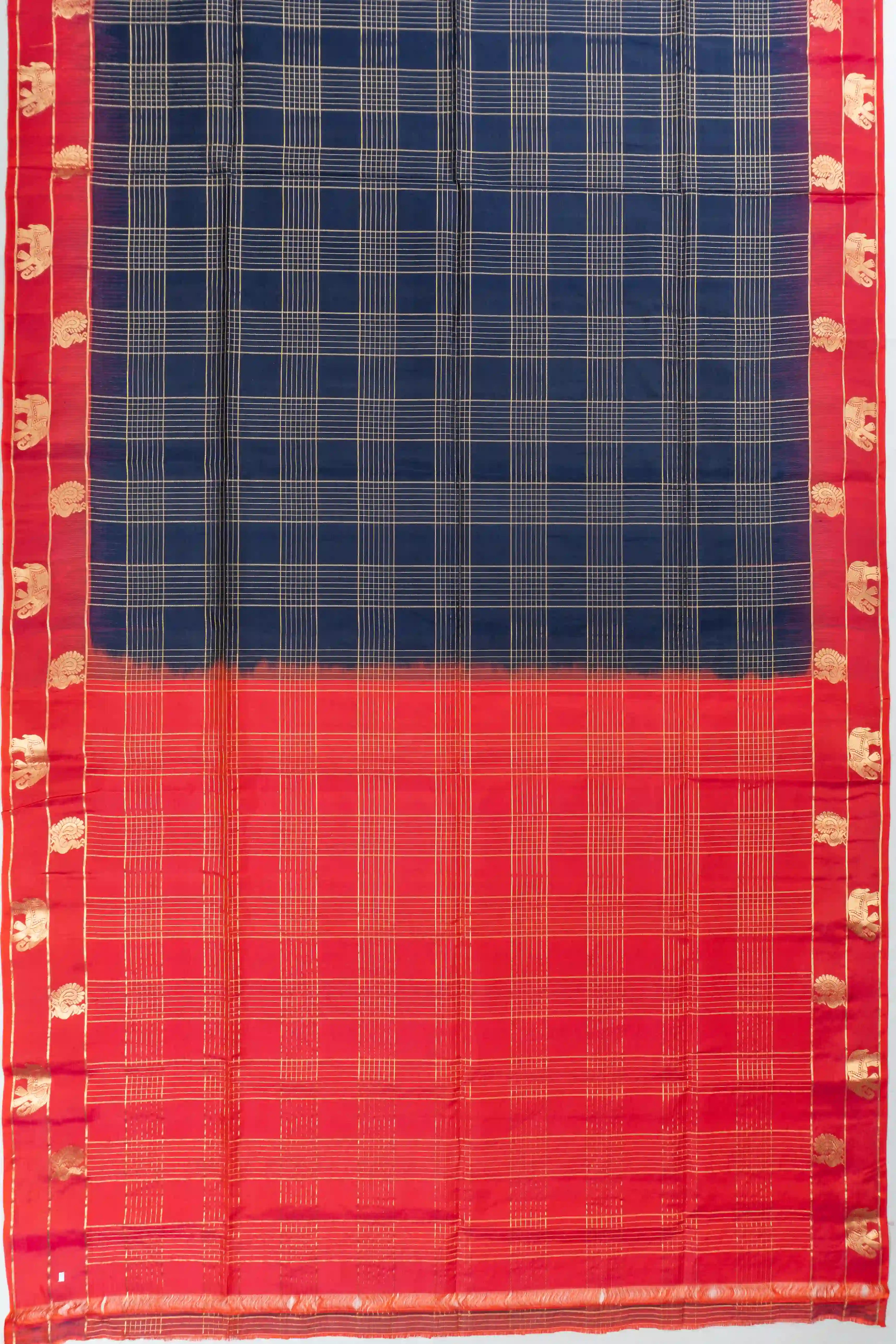 Taranga Kanchi Silk Checks Dark Blue Saree