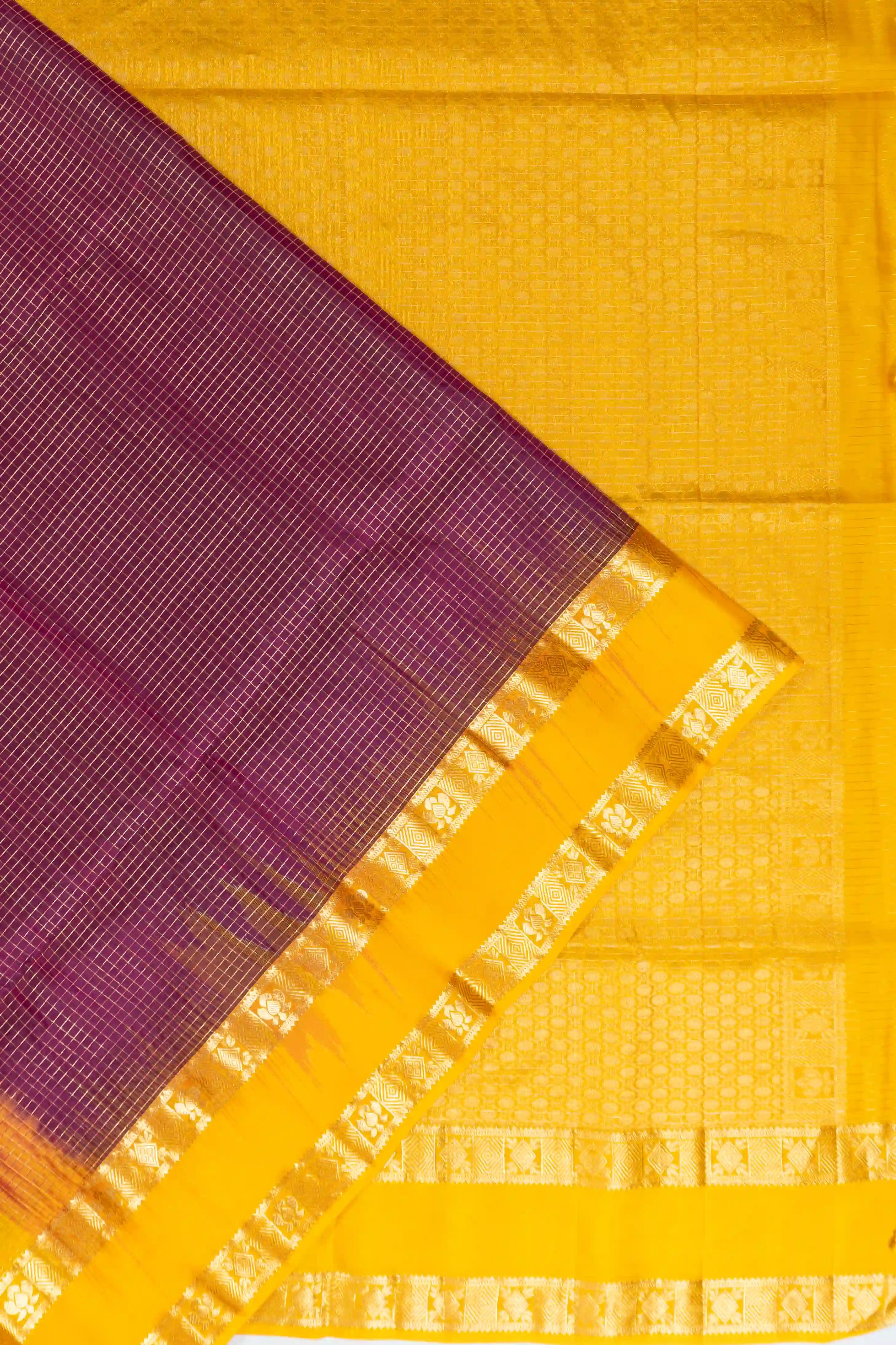 Taranga Kanchi Silk Checks Maroon Saree With Rettai Pettu Border