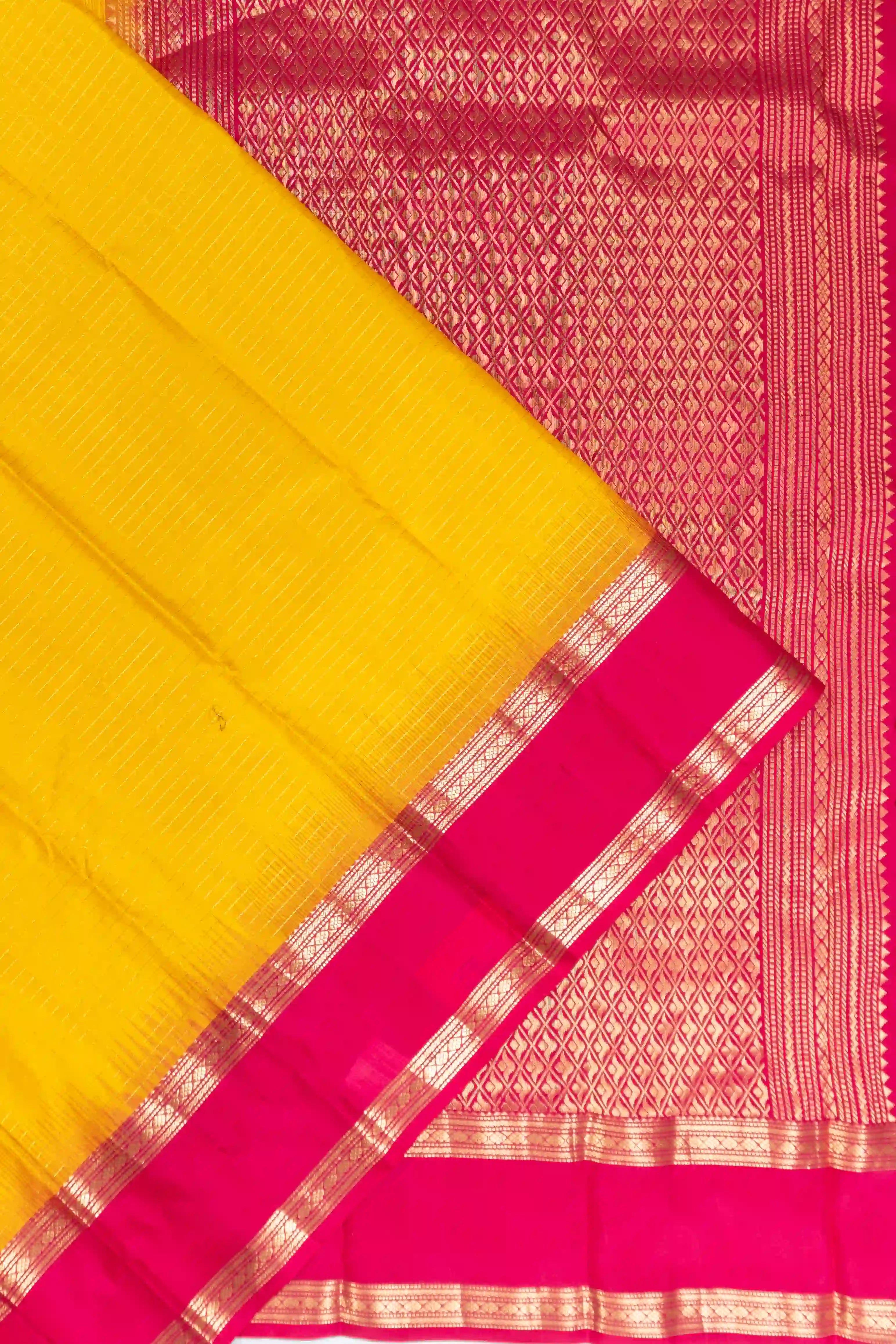 The saree features a striking contrast gold zari medium pink border, adding a layer of opulence and charm