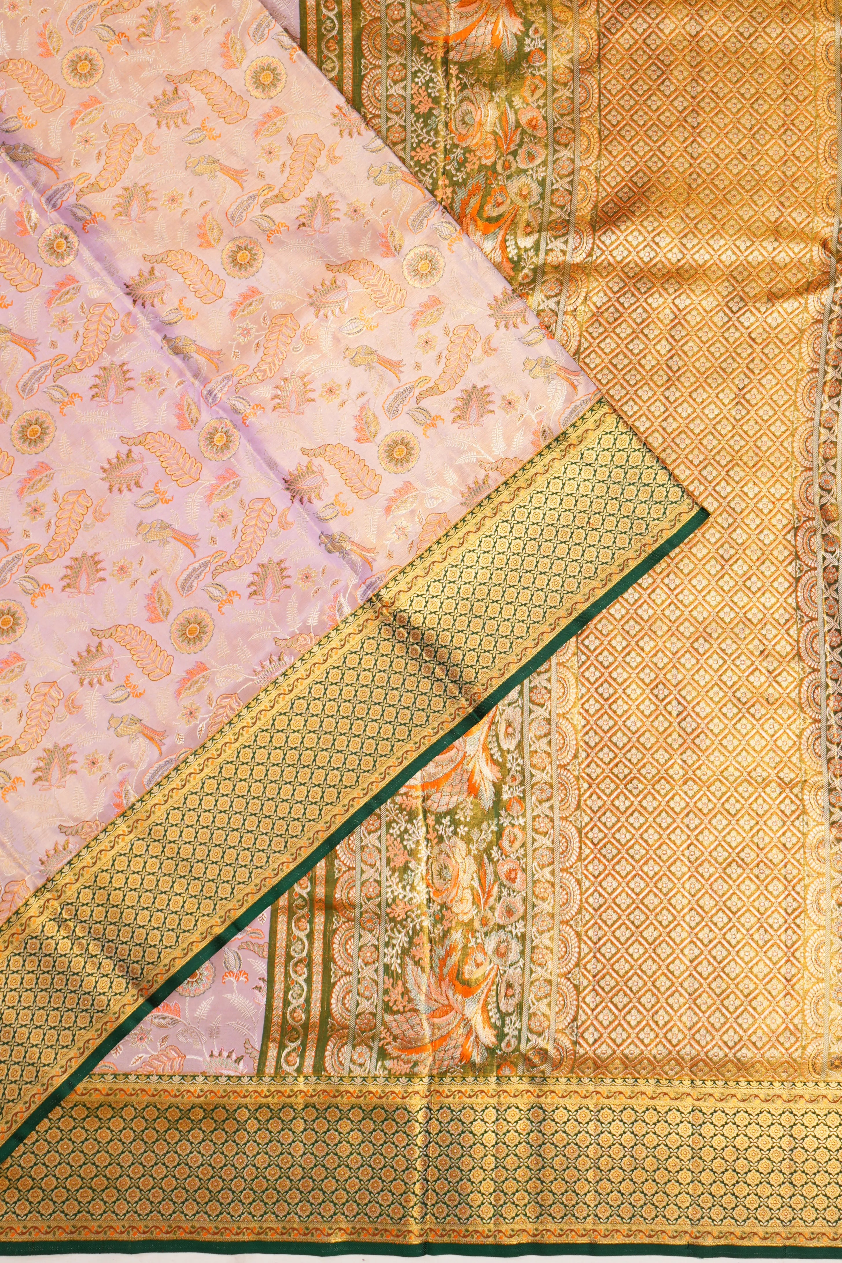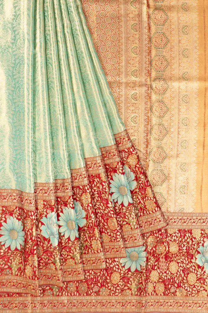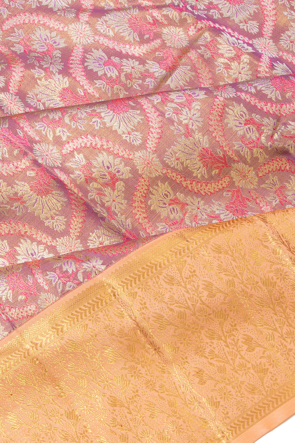 • Tissue Jaal - The Kanchipuram Silk Tissue Jaal is a common variety of this type of saree. The Jaal here refers to the intricate pattern of floral motifs and vines throughout the body of the saree. It uses a contrasting colour palette and adds to the grandeur of the saree.