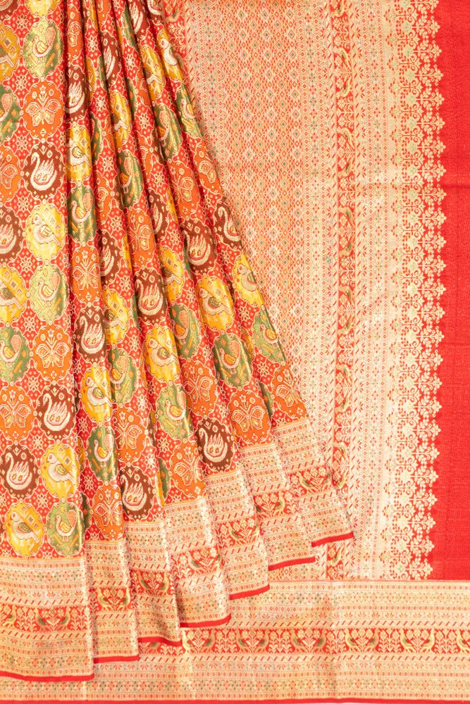 Tissue silk is a form of pure silk saree. The silk yarn used in this is extremely fine along with the zari that is used. The metallic look of the saree is due to the use of gold and silver zari along the warp and weft. This gives it an overall sheen that is extremely radiant. It follows the same process of weaving as that of the Kanjivaram silk sarees, but the difference is in the density of the threads. The Kanchipuram gold tissue saree is the most preferred among all available colours. These sarees are majorly worn by brides on their wedding day as it looks extremely royal and festive. The fine zari work makes the fabric shine throughout, thus adding to its grandeur. The borders are heavy and broad, depicting different symbolic motifs. These sarees are statement outfits and enhance every woman’s looks with very little effort.