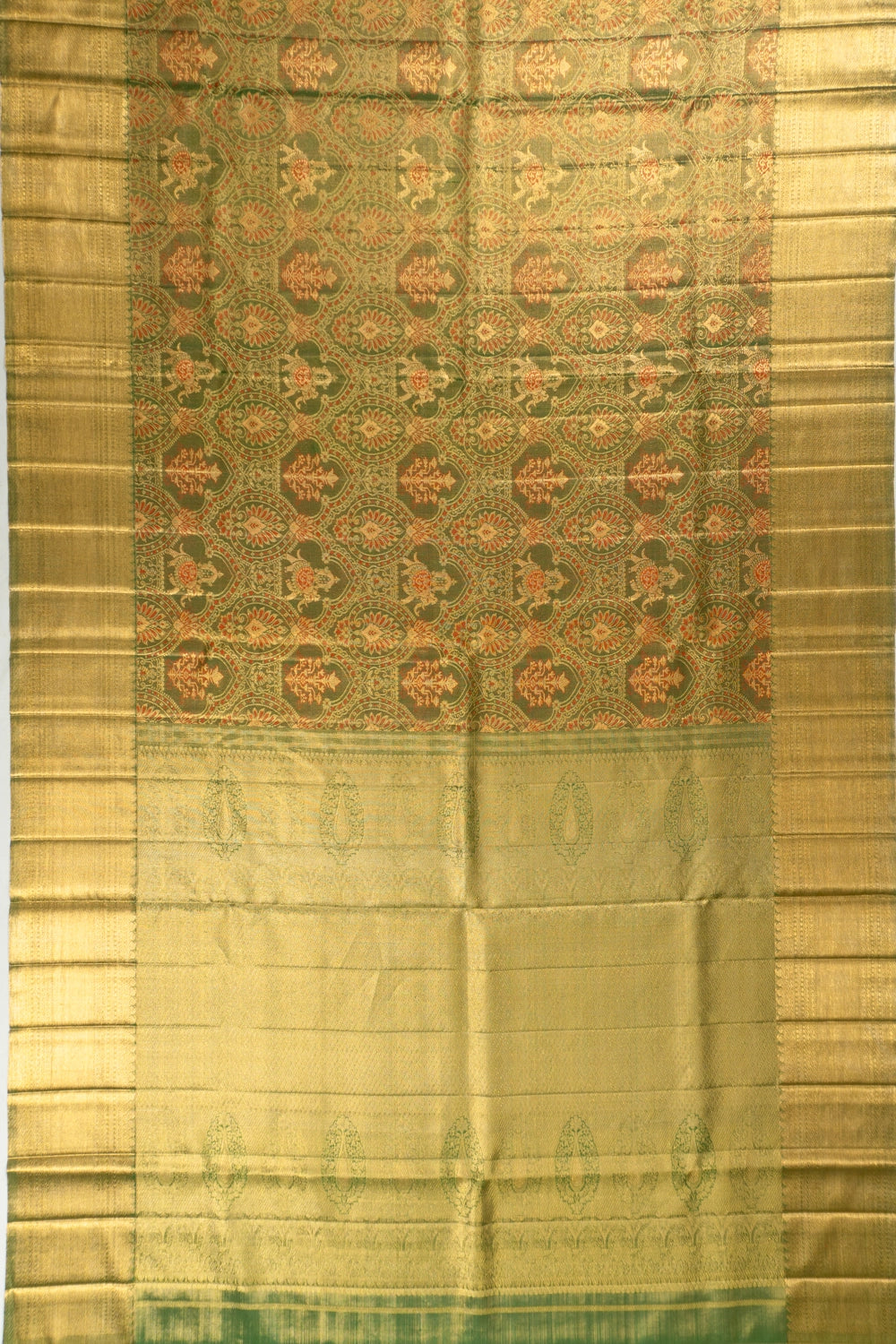 Kanchipuram Silk Tissue Brocade Bottle Green Saree