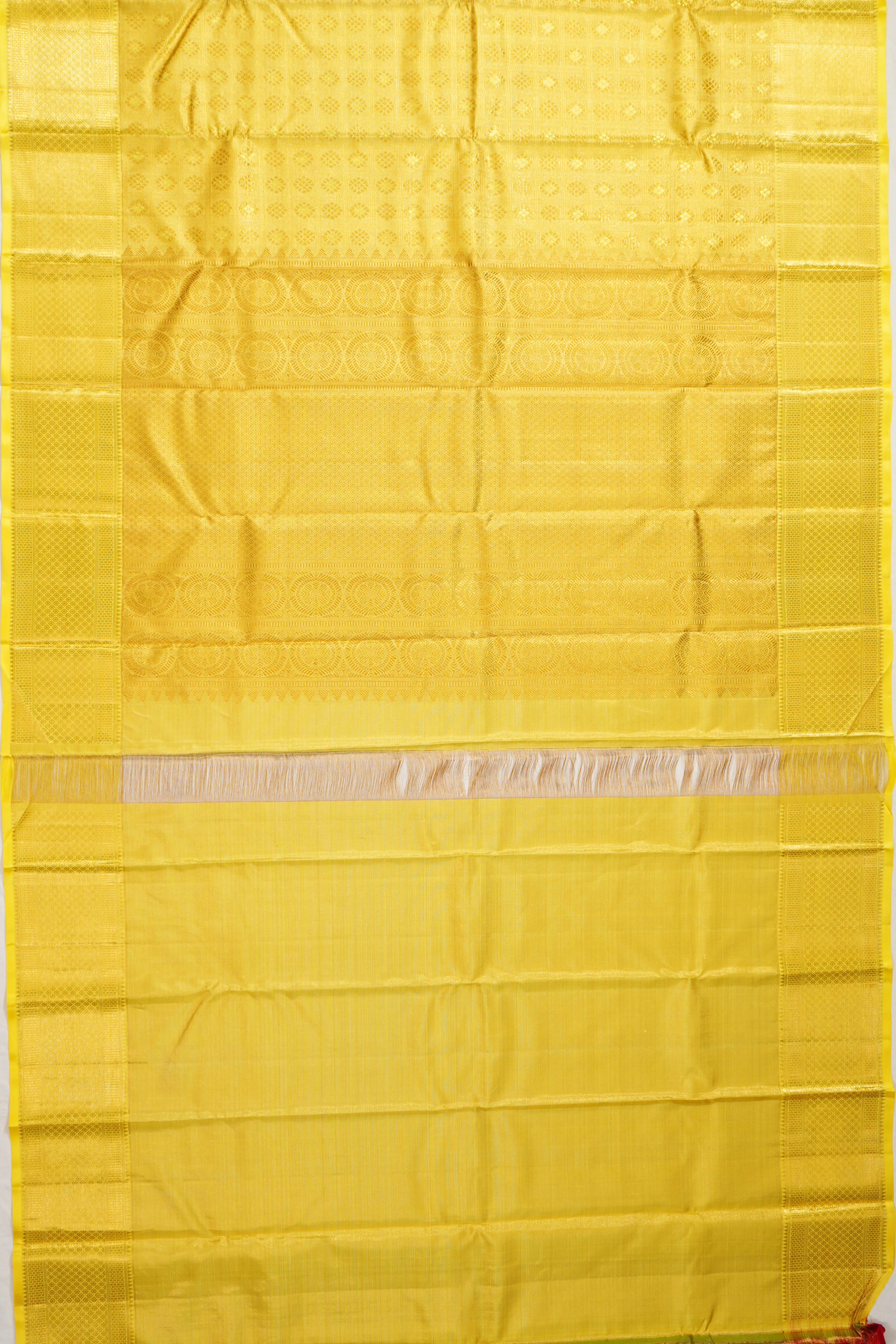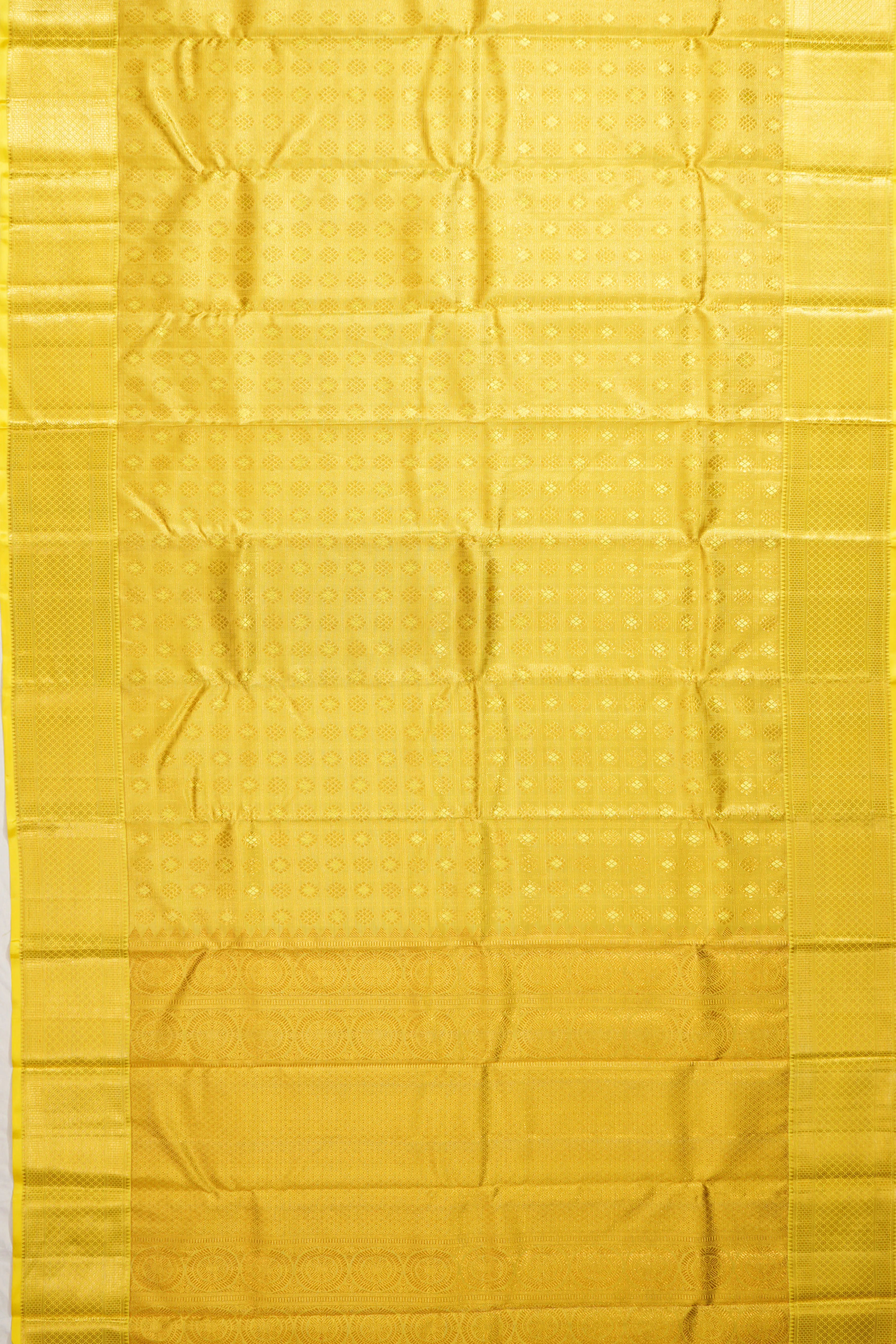 Kanchipuram Silk Tissue Checks And Butta Yellow Saree