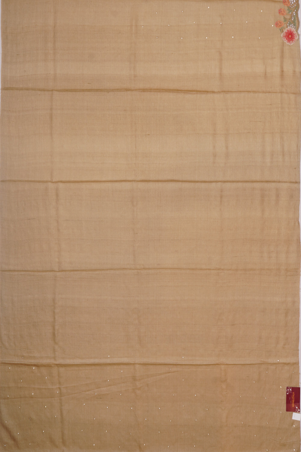 Tussar Embroidery Butta Beige Saree With Scallop Border