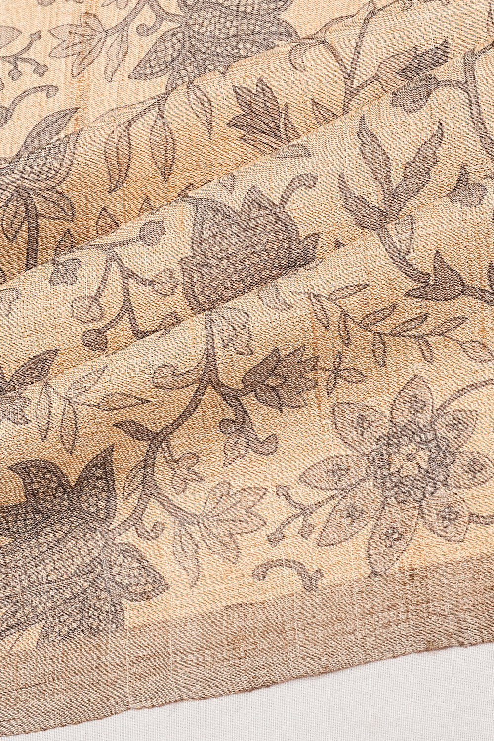 Kalamkari is an ancient art form and is noted for its beautiful hand paintings on fabrics. Hand painted Tussar silk sarees use organic colours and dyes. The most popular hand-painted sarees are freehand drawing using the pen and painting pictures inspired by mythology.