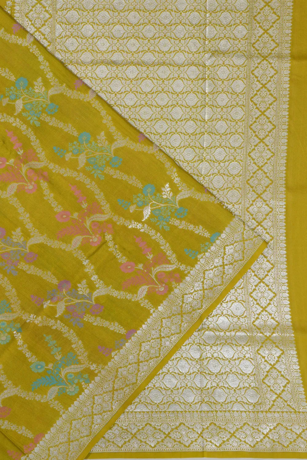 Banarasi Tussar Georgette Jaal Mehendi Green Saree