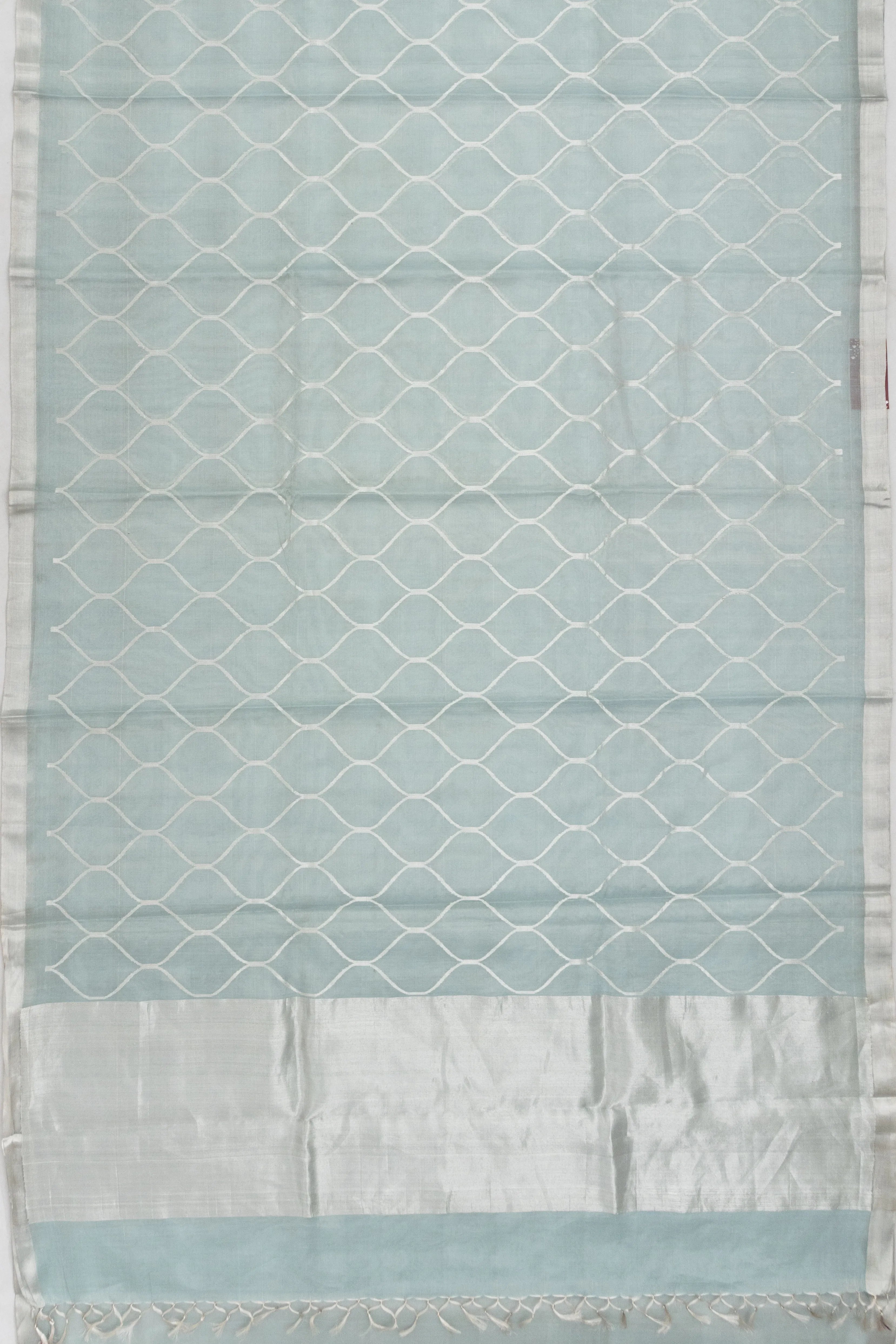 Cotton By Tussar Tissue Jaal Pastel Blue Saree