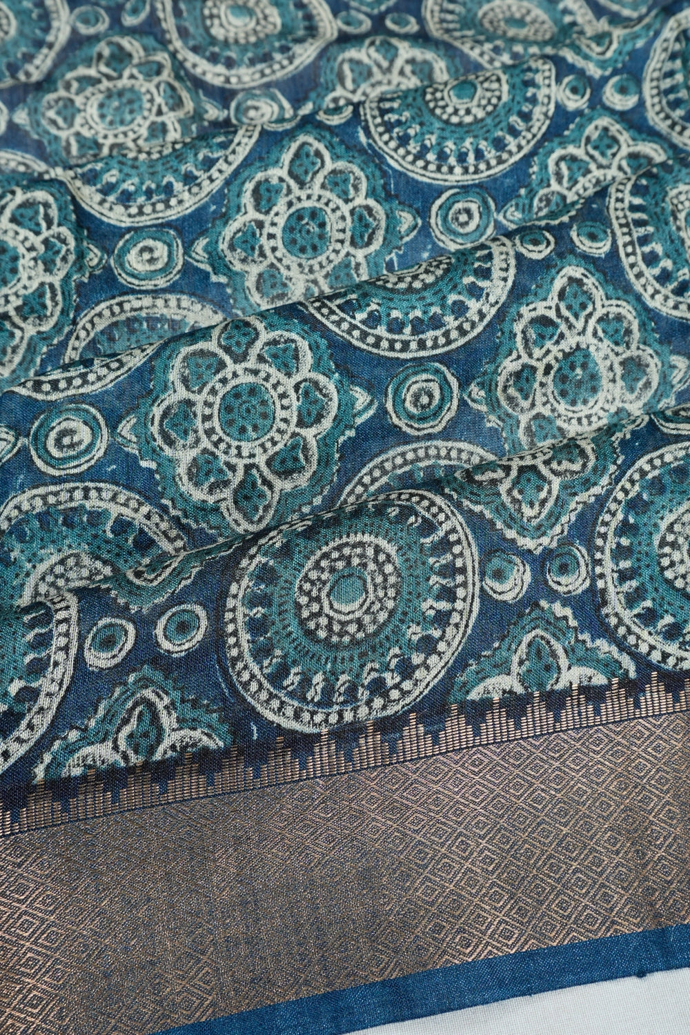 Embrace the allure of tradition with this Tussar Brocade Blue Saree, a testament to heritage-rich craftsmanship The saree's body, crafted from luxurious silk, radiates a serene blue hue, while delicate zari work adds a touch of timeless elegance