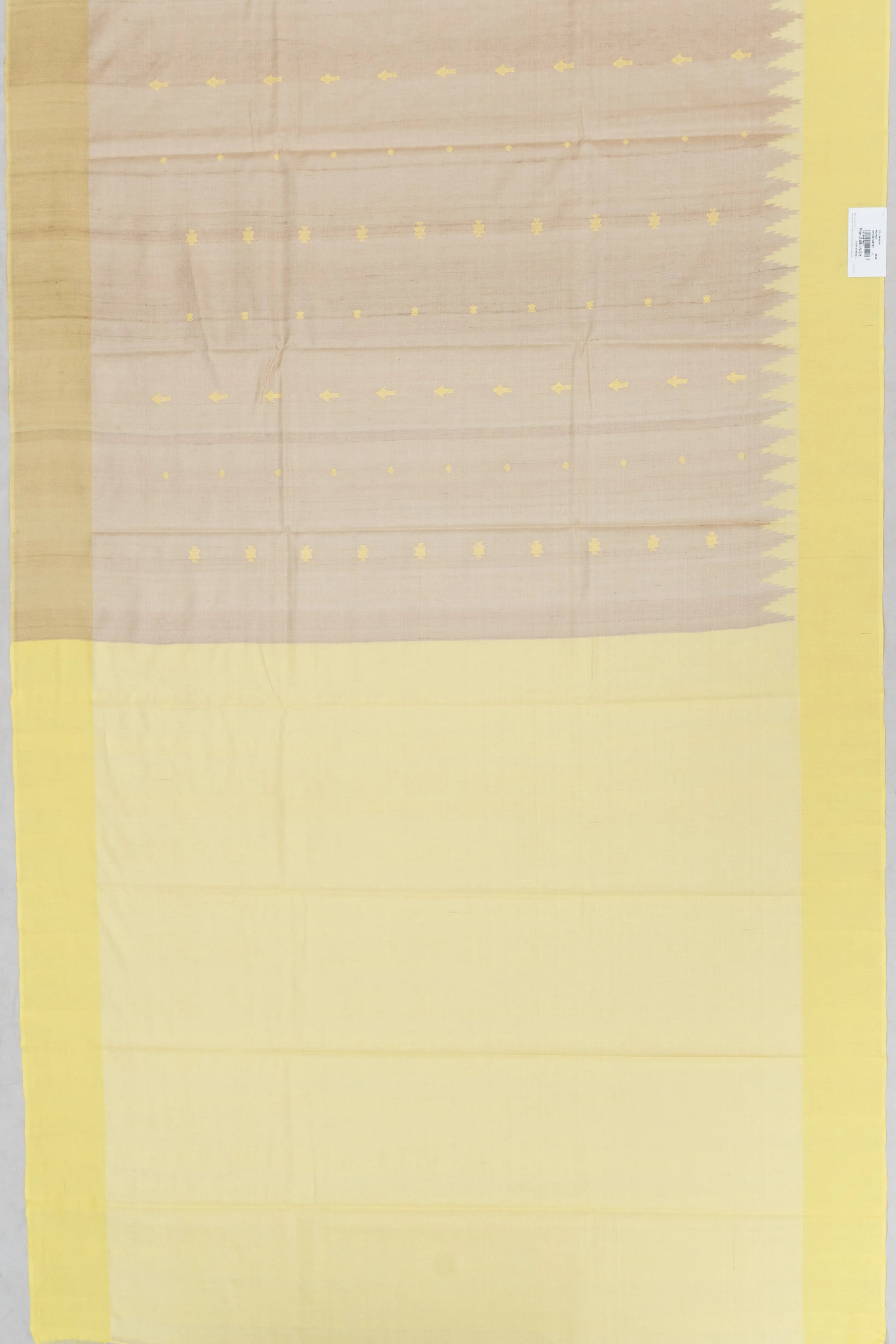 Embrace the rich heritage of traditional attire with our Tussar Butta Beige Saree, a masterpiece of elegance and craftsmanship The saree's body is adorned with delicate yellow threaded floral buttas, creating a tapestry of subtle beauty that speaks of timeless grace
