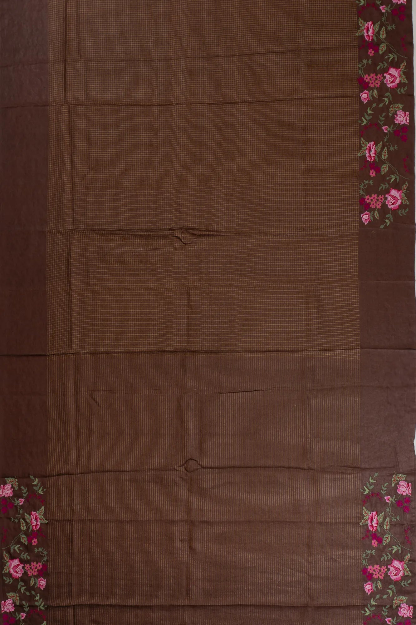 Tussar Checks Brown Saree With Embroidery Border