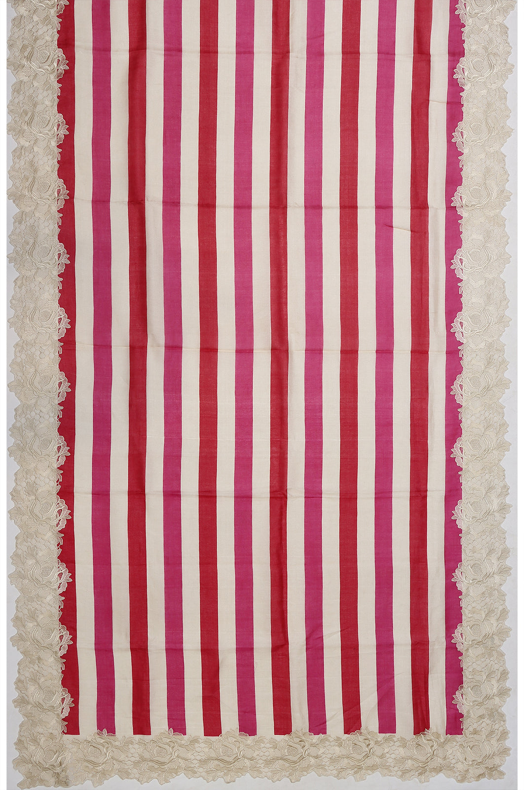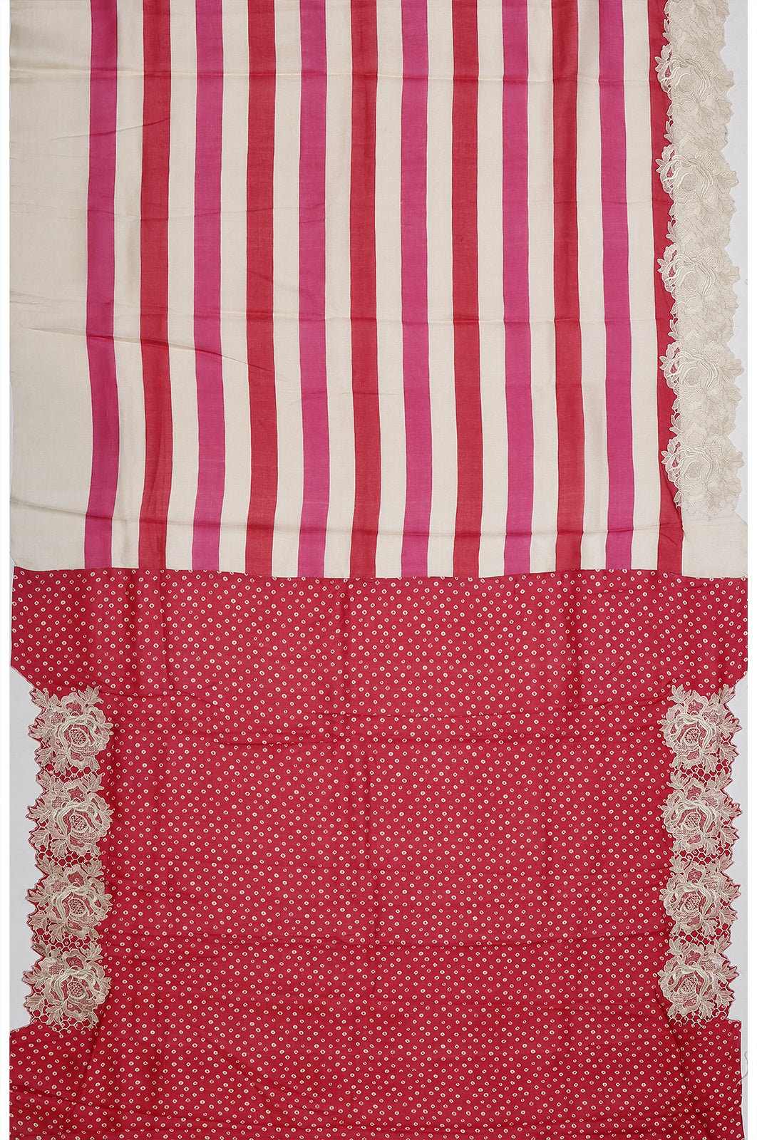 Tussar Lines White And Pink Saree With Cut Wokr Border