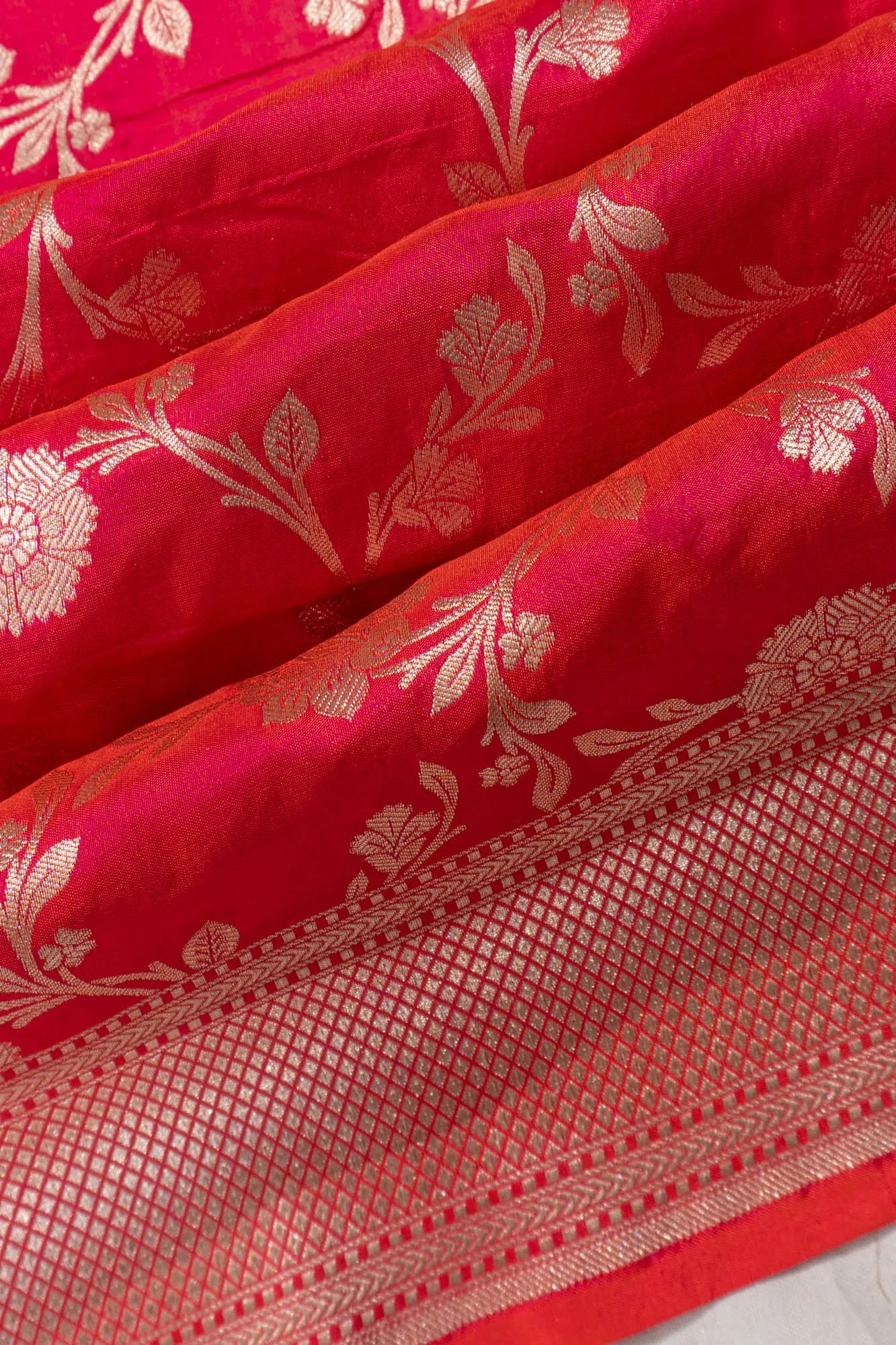 Paired with a plain blouse in the same striking hue, this saree offers a unified and graceful appearance