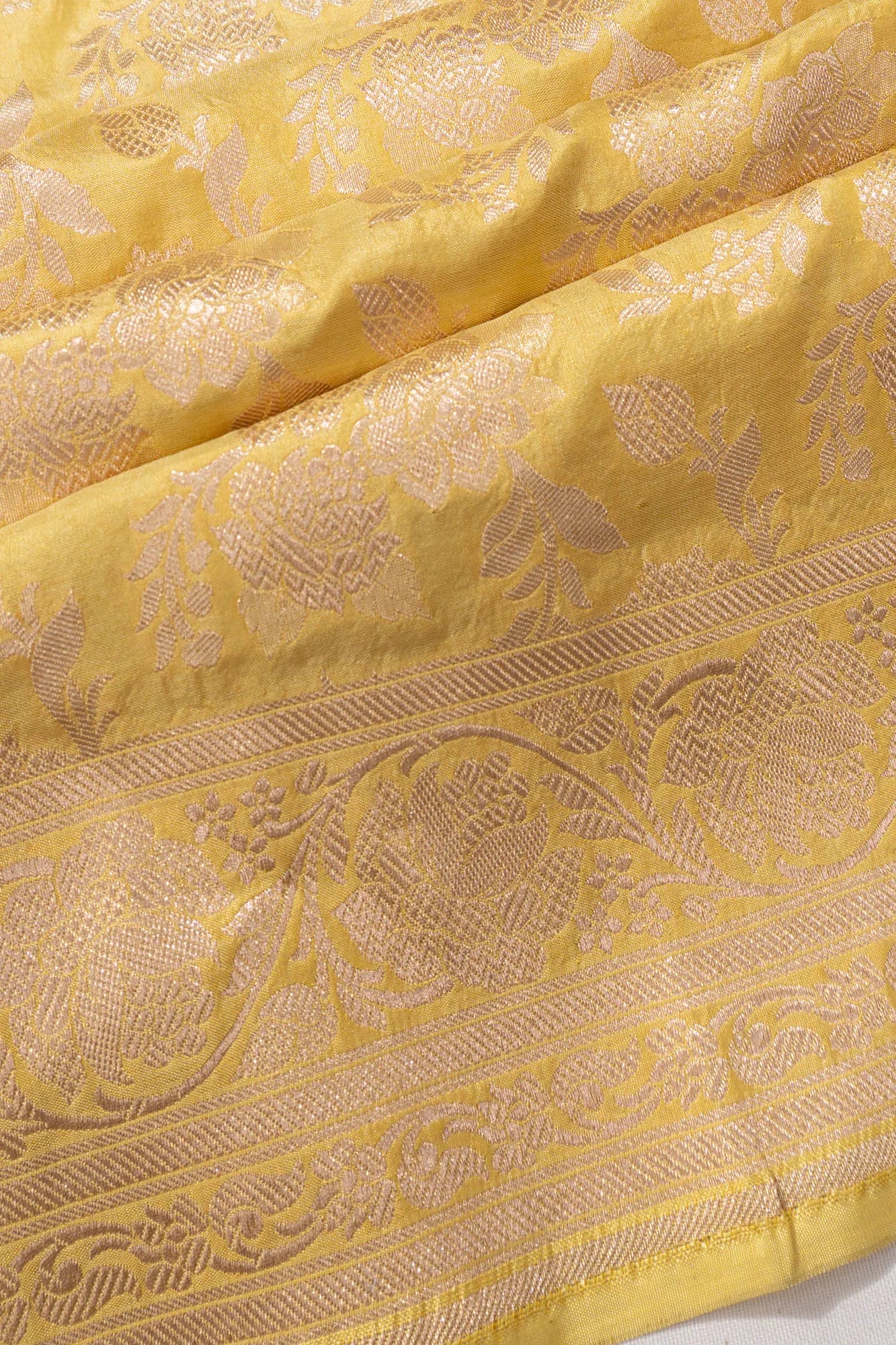 The ensemble is completed with a coordinated plain blouse in the same serene pale yellow, presenting a harmonious look that celebrates the beauty of Indian heritage