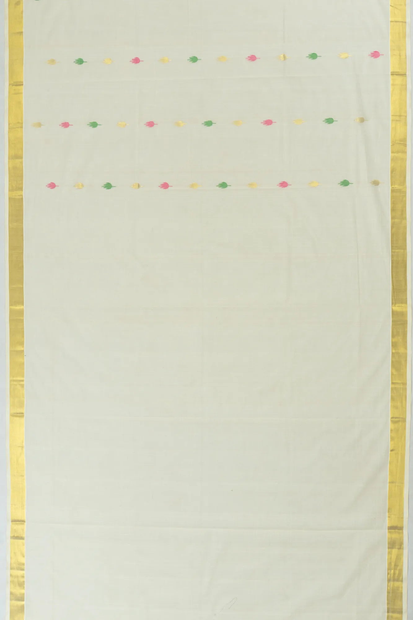 Framed by a self gold zari kaddi small border, this piece exudes a subtle sophistication