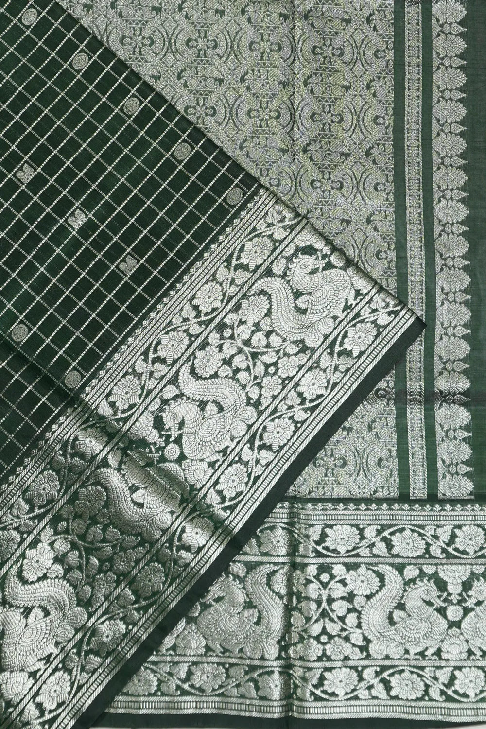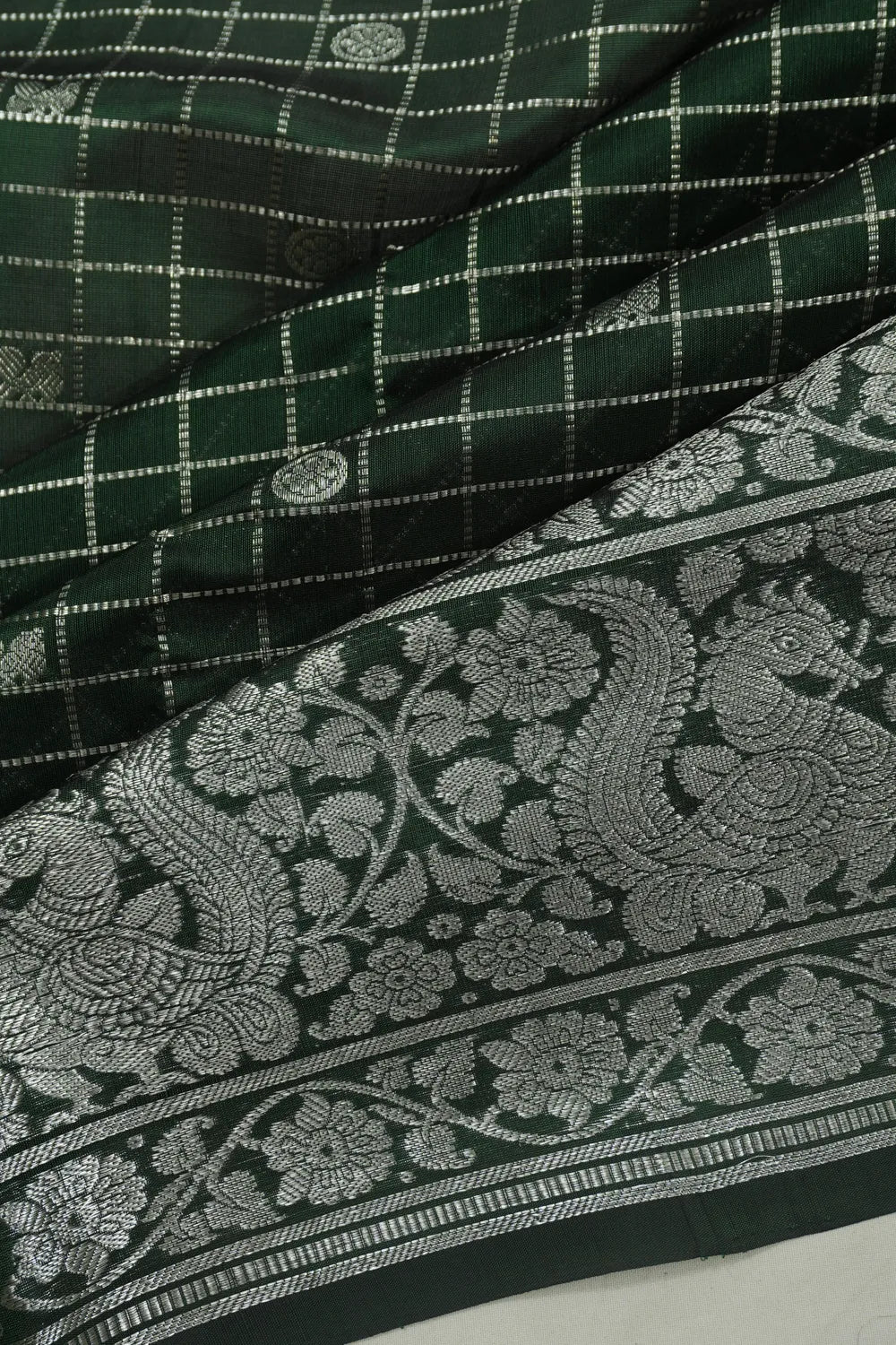 Venkatagiri Silk Checks And Butta Bottle Green Saree