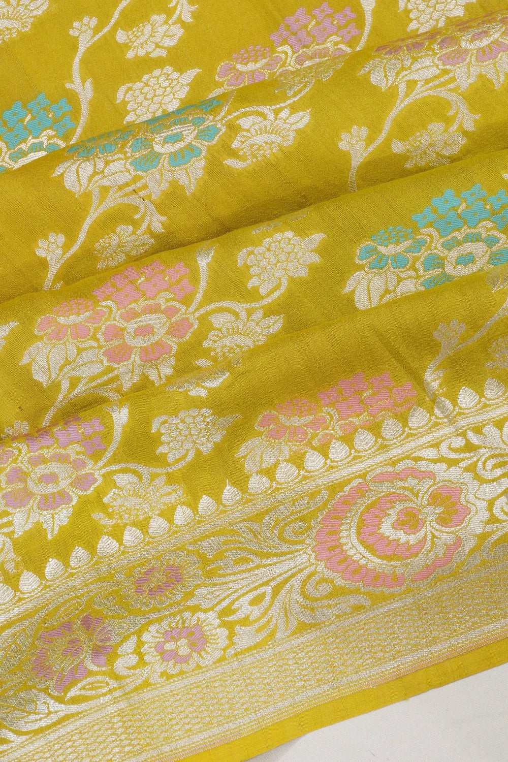 Banarasi Tussar Georgette Jaal Mehendi Green Saree