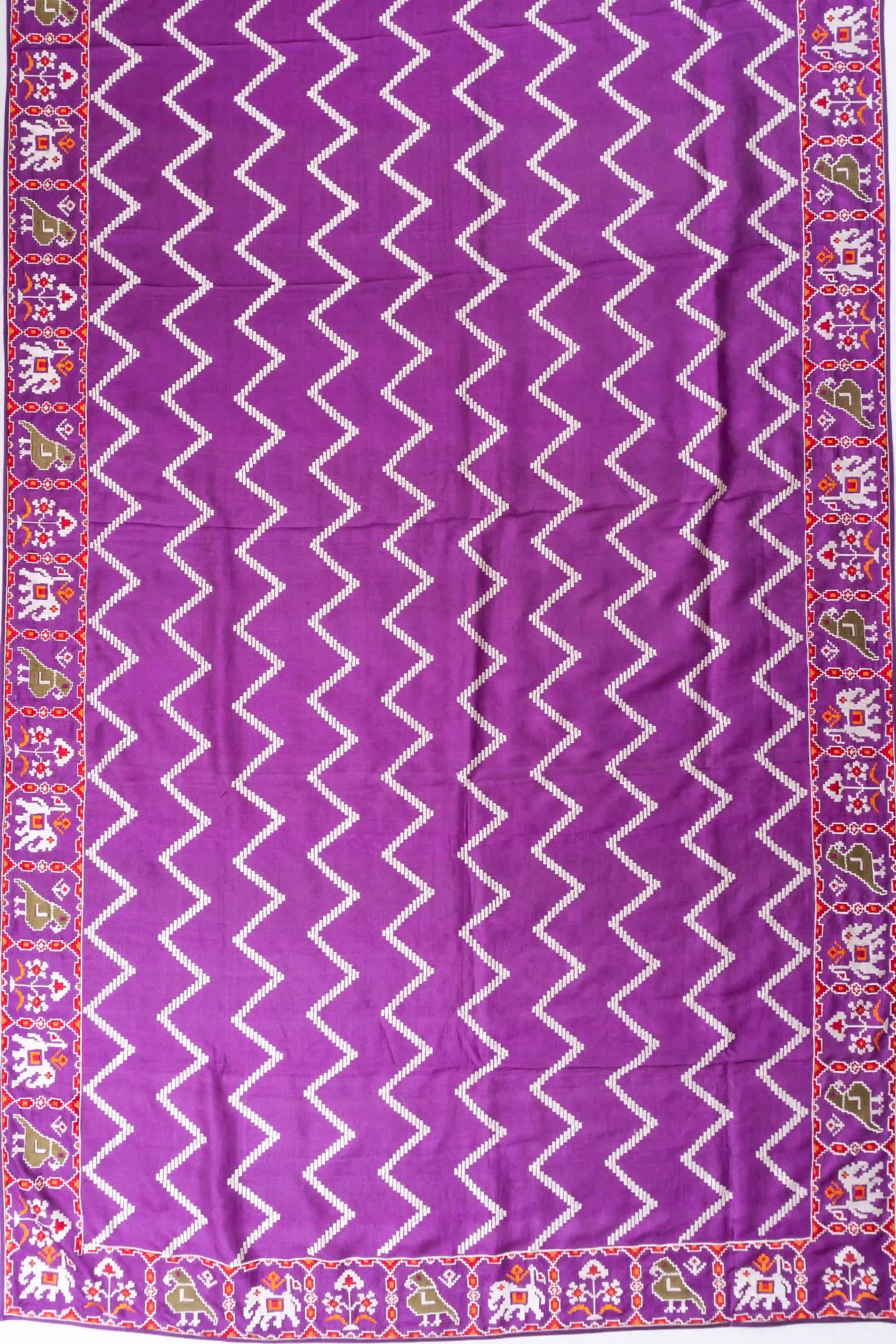 Tussar Embroidery Zig Zag Lines Purple Saree