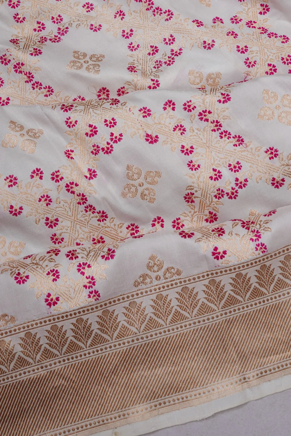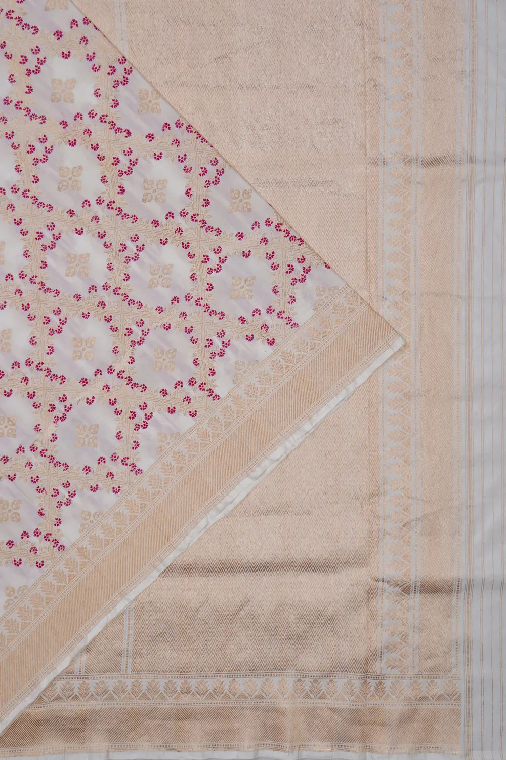 Banarasi Satin Kadwa Meenakari Jaal White Saree