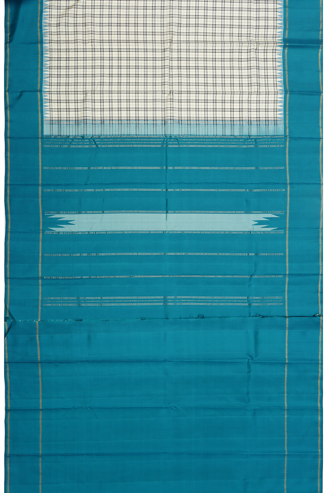 The saree features a graceful white body adorned with intricate checks, capturing the timeless charm of classic silk craftsmanship