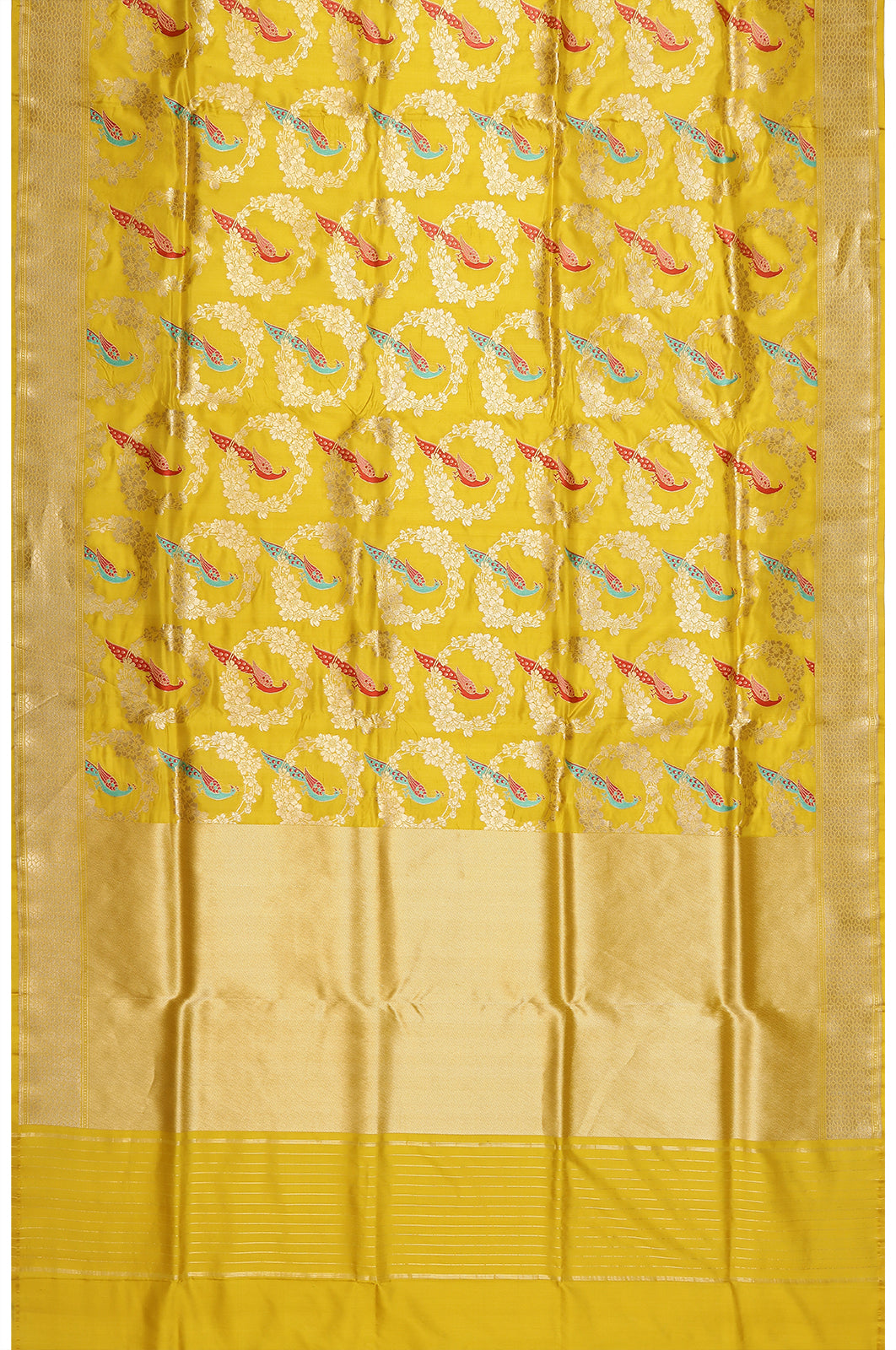 Paired with a plain blouse in the same vibrant yellow hue, this saree offers a harmonious ensemble, perfect for those special occasions where heritage meets elegance