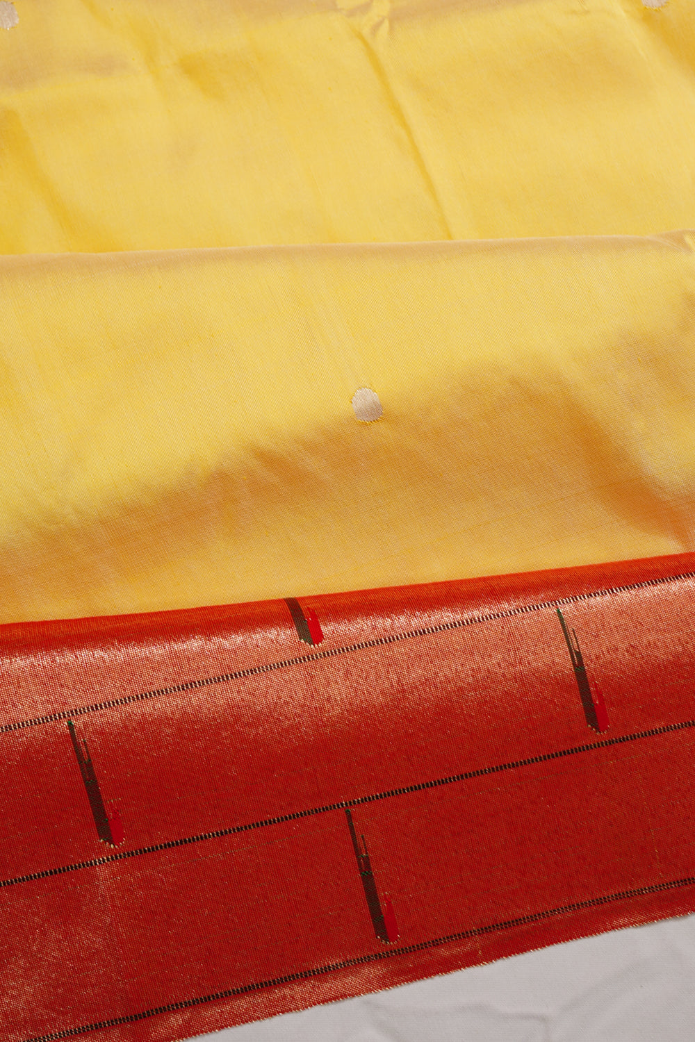 Paithani Silk Butta Lemon Yellow Saree With Single Muniya Border
