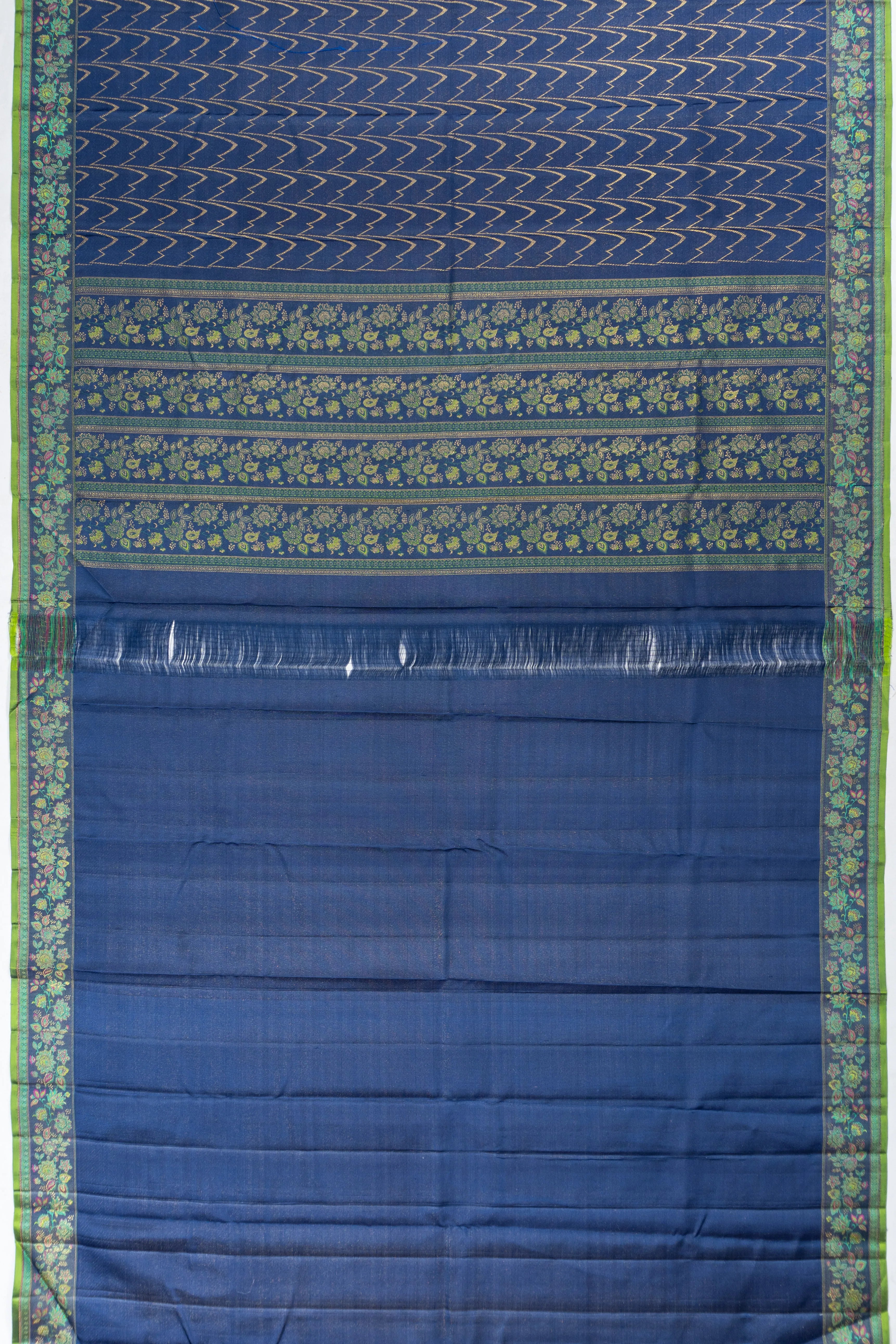 Zero Zari Classic Kanchipuram Silk Zig Zag Lines Dark Blue Saree