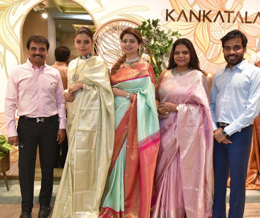 Kankatala has completed 80 years of glorious journey, carrying forth the rich tradition set by the founder the late Sri.Kankatala Appalaraju. Beiginiing his journey on a humble note selling sarees from door to door, he laid a sound foundation for today's mighty edifice. Its growth is further expedited by Mr.Kankatala Mallikharjuna Rao, who bleives in blending the traditional styles with modern trends. This legacy is now carried forward by the dynamic 3rd generation family members, Mr. Arvind, Bharat, and Anirudh Kankatala.Spreading tantacles far and wide, Kankatala now boasts of thriving branches in many cities. In this long journey there are three things that have remainded constant with the Brand Kankatala. Its commitment to quality, craftsman ship and diversity in its offerings. Sourcing sarees from Chennai, Kanchipuram, Pochampally, Dharmavaram, Ponduru, Uppada,Varanasi, Yeola , Gujarat And More Kankatala showcases a rich cultural tapestry.