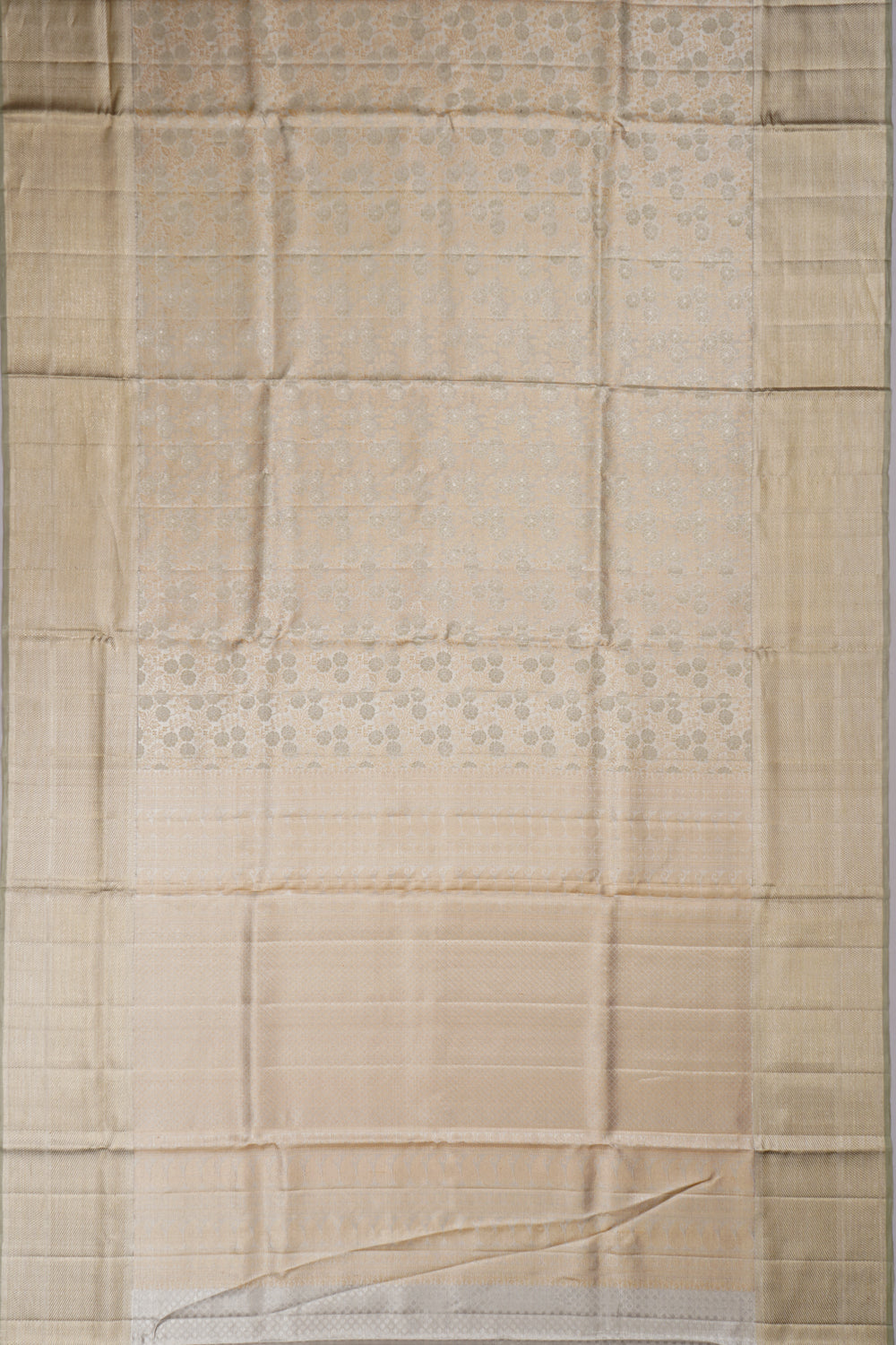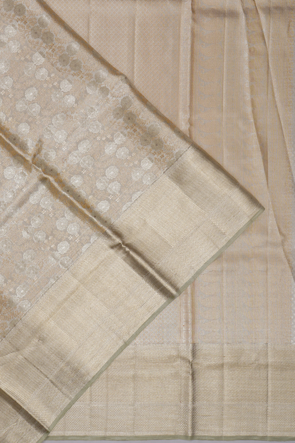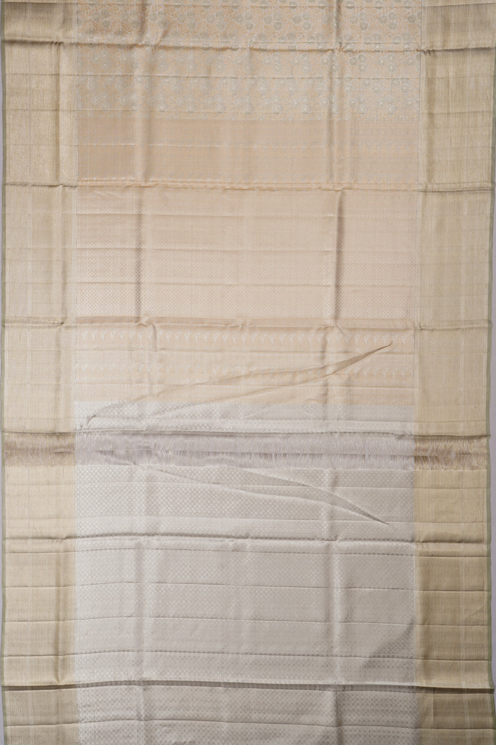 Antique Zari Kanchipuram Silk Brocade Silver Saree