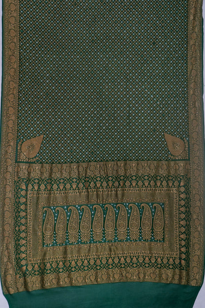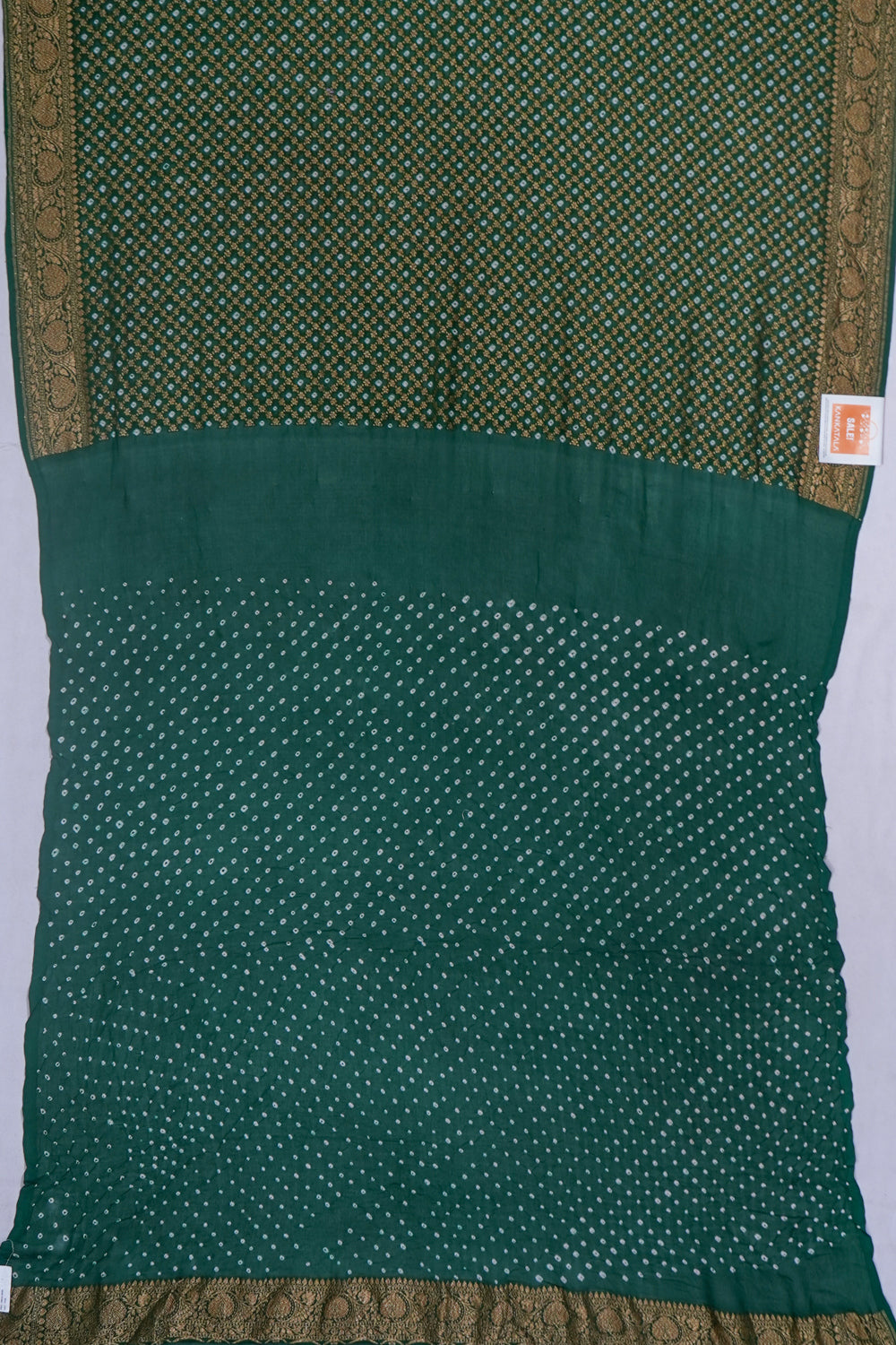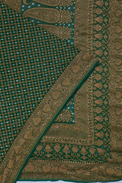 Banarasi Georgette Bandhani Brocade Dark Green Saree, Body.