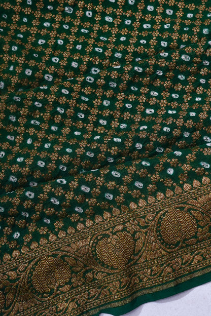 Banarasi Georgette Bandhani Brocade Dark Green Saree