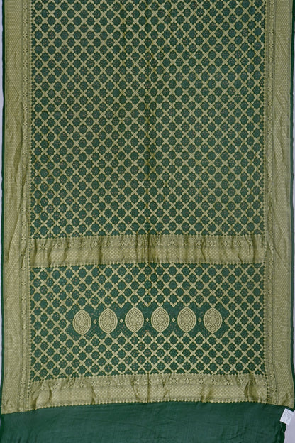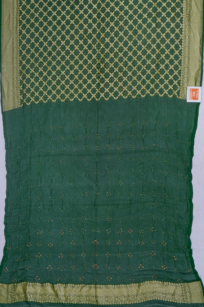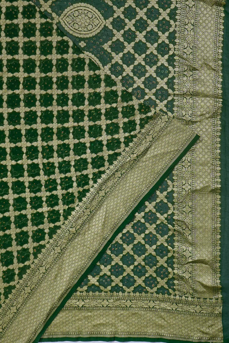 Banarasi Georgette Bandhani Brocade Dark Green Saree, Body.