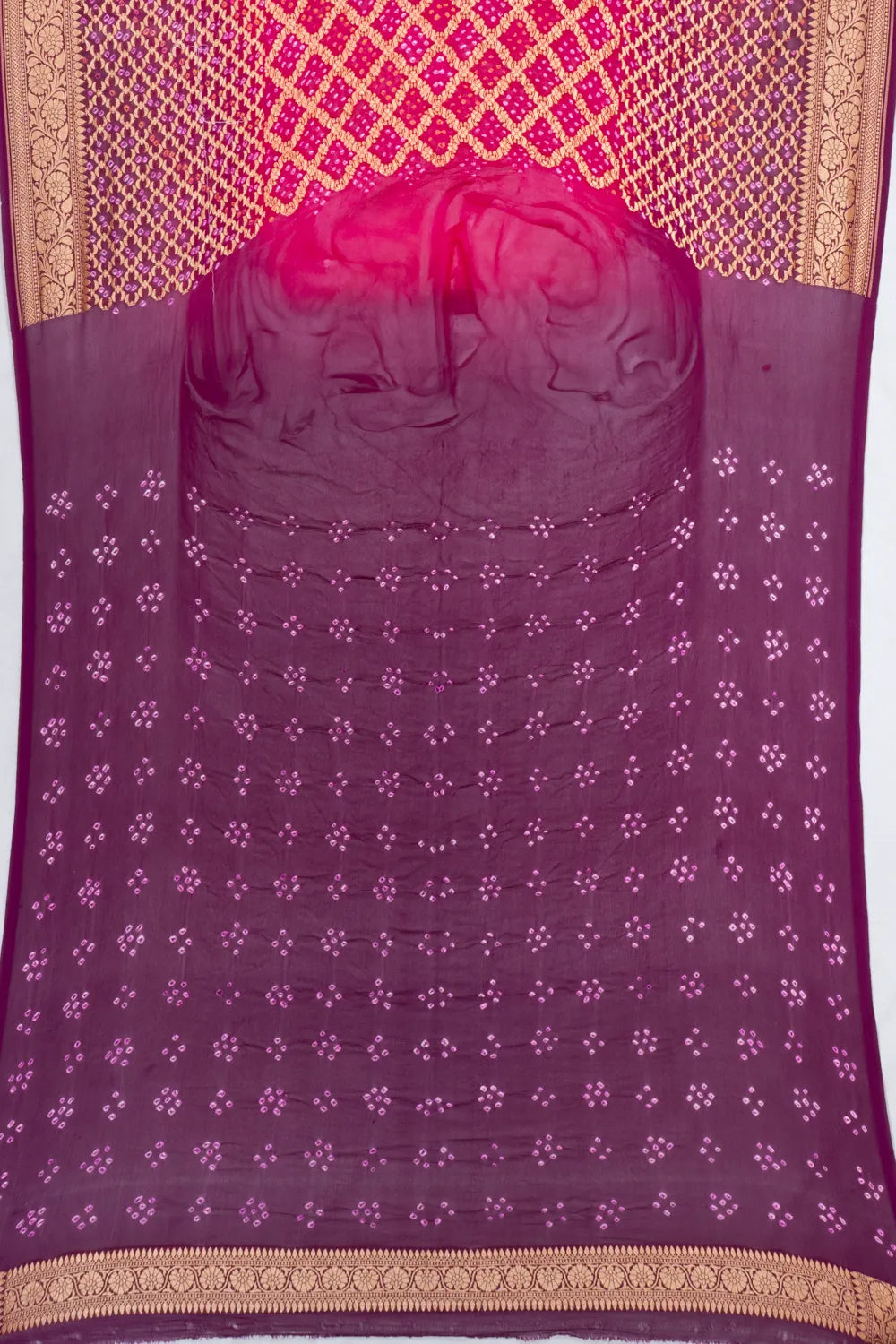 Banarasi Georgette Bandhani Pink And Purple Saree