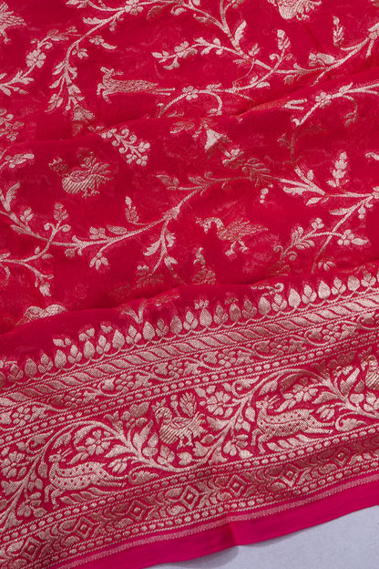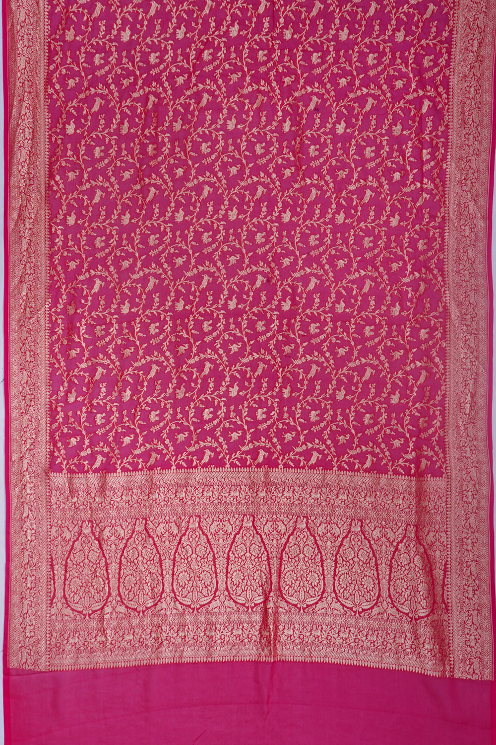 Banarasi Georgette Brocade Rani Pink Saree, Body.