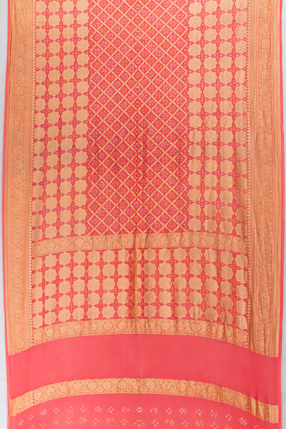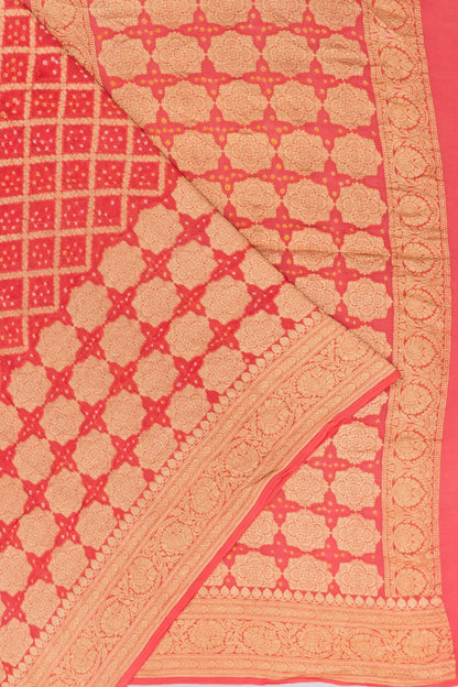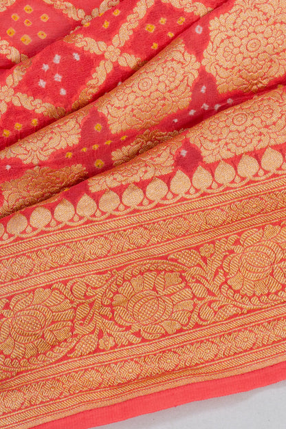 Banarasi Georgette Criss Cross Checks And Bandhani Red Saree