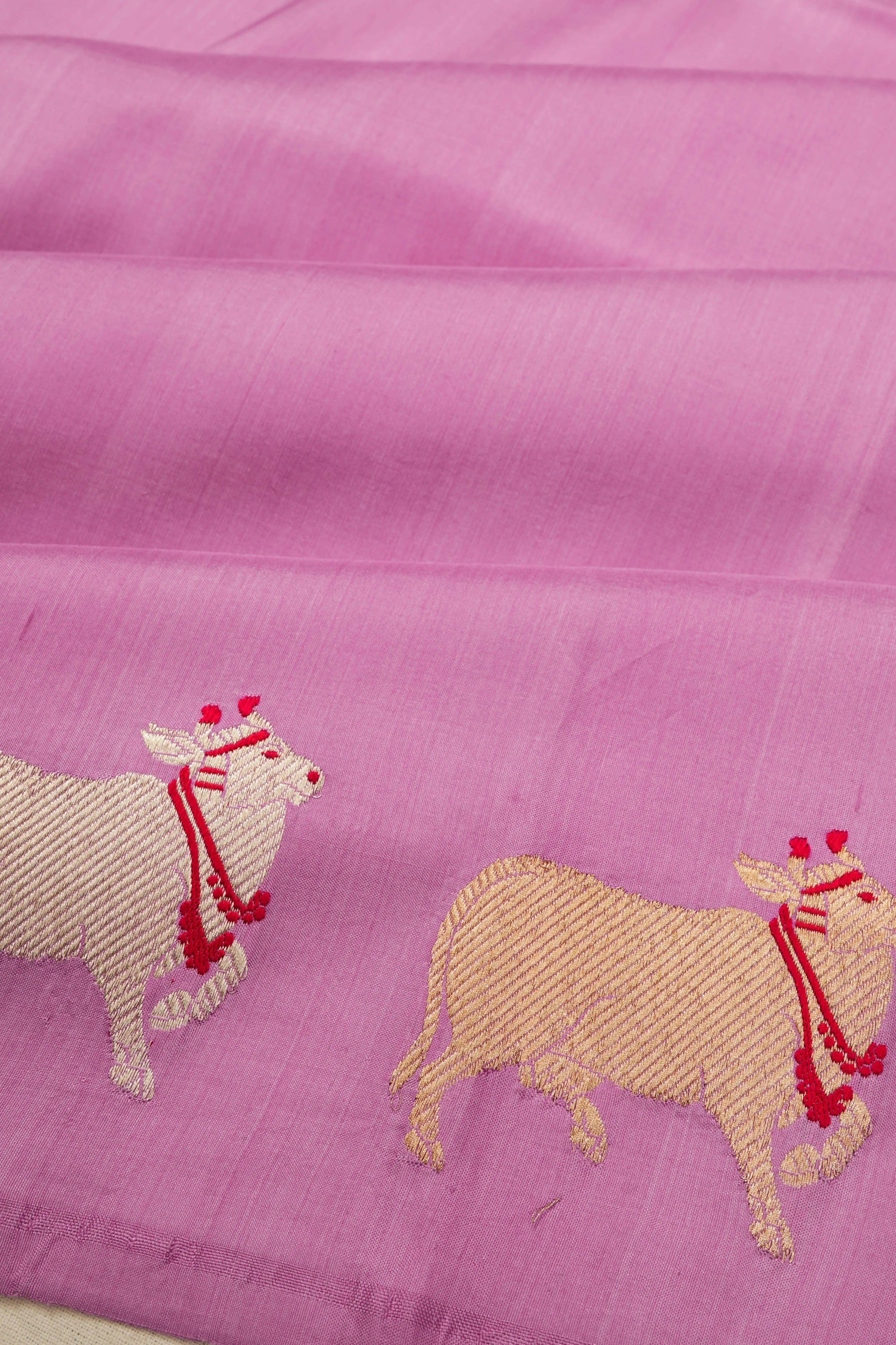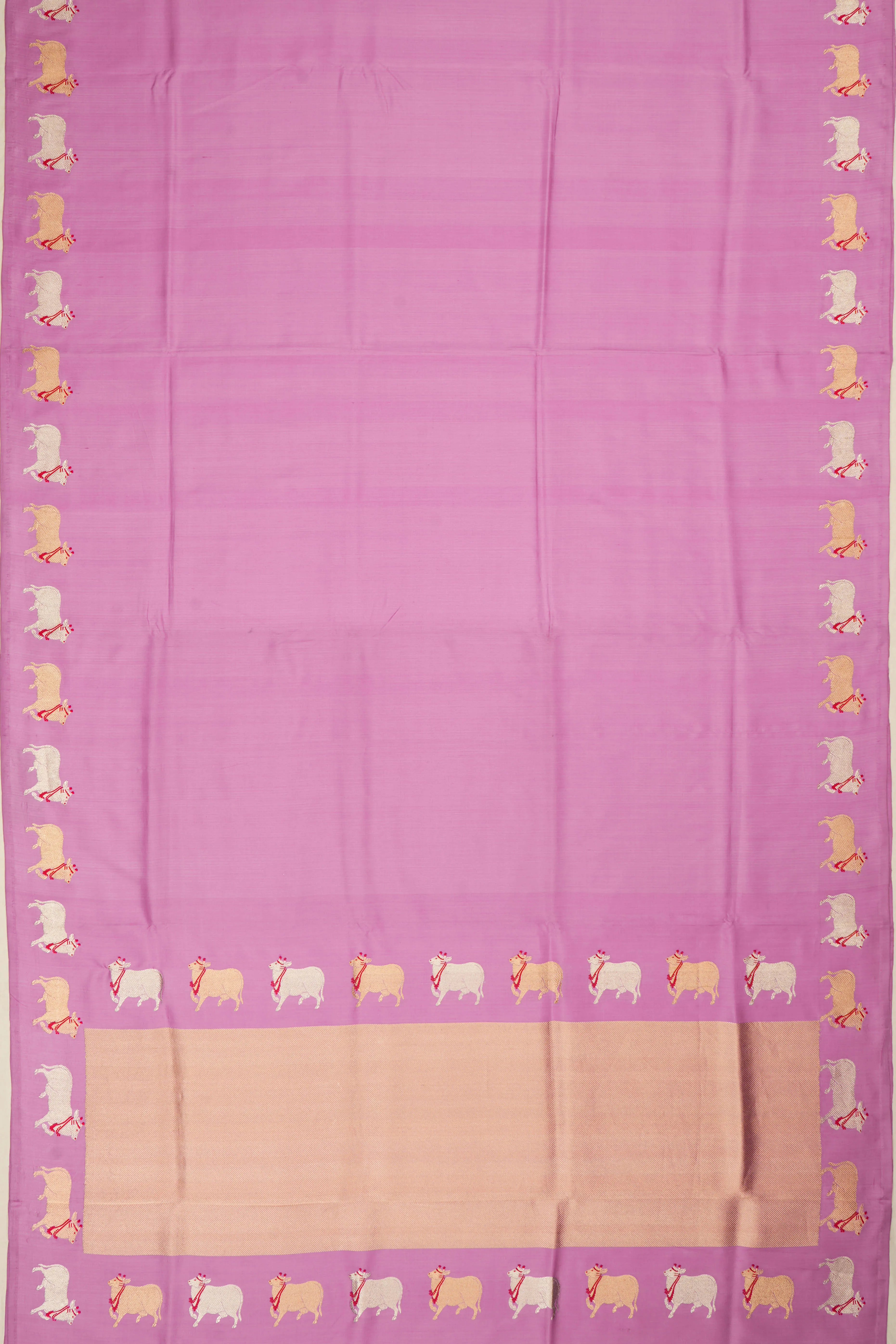 Banarasi Katan Silk Plain Lavender Saree With Pichwai Border