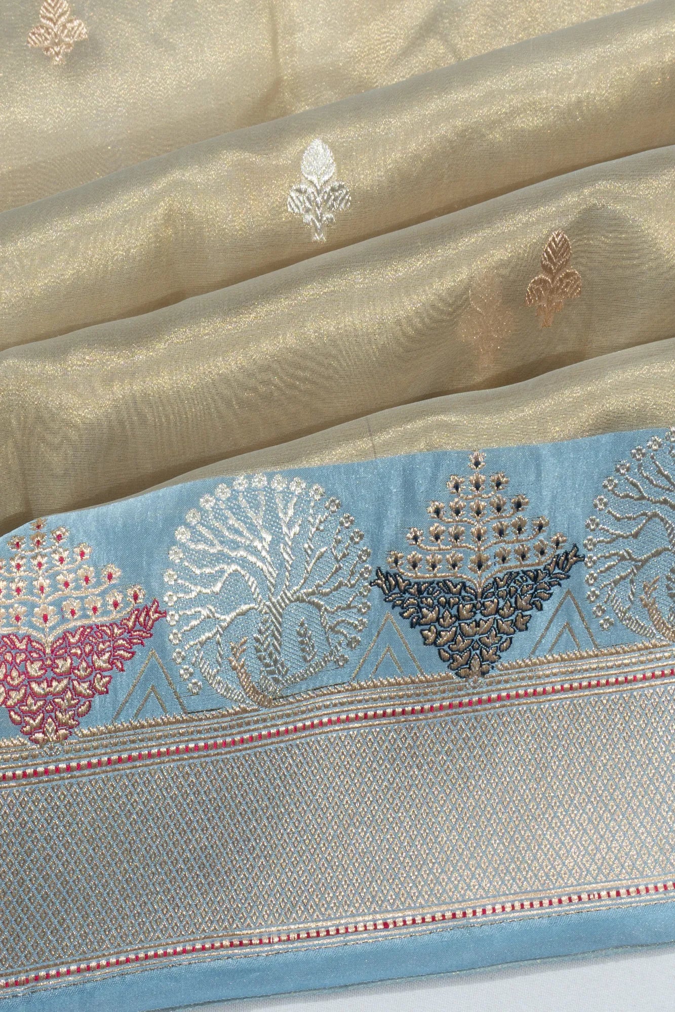 Banarasi Kora Organza Tissue Butta Gold Saree