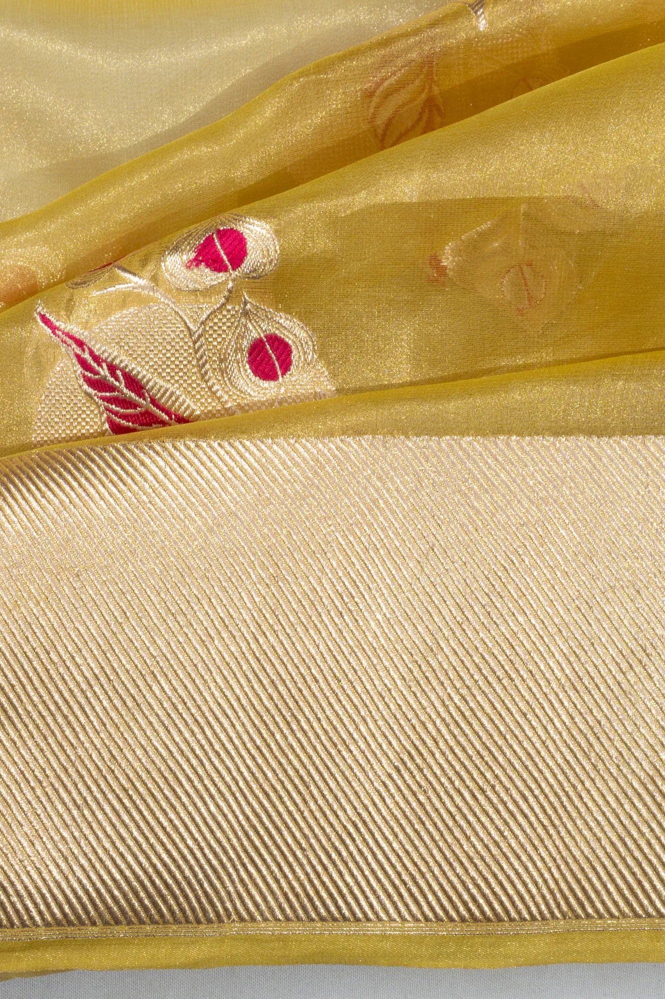 Banarasi Kora Organza Tissue Butta Gold Saree
