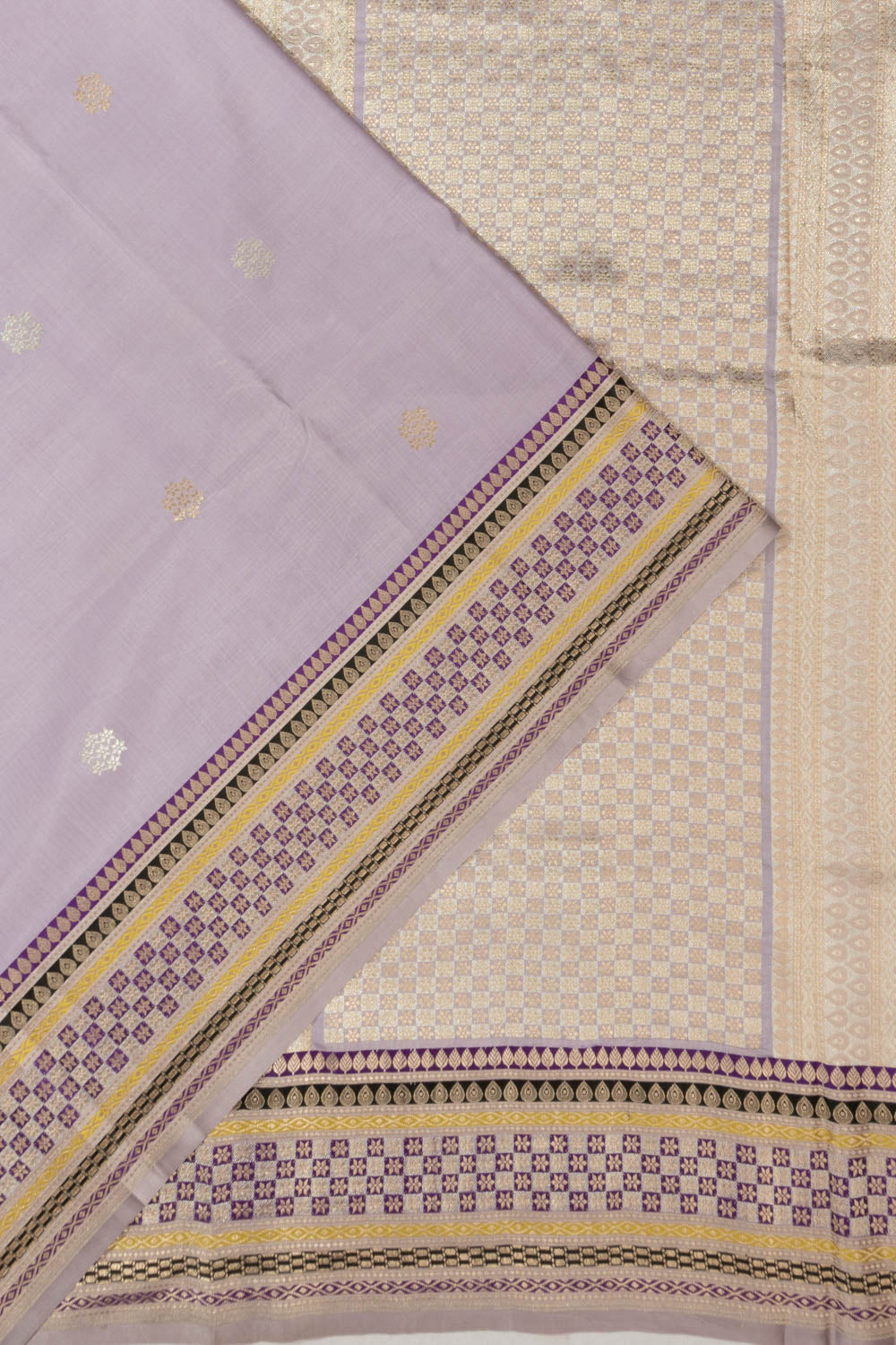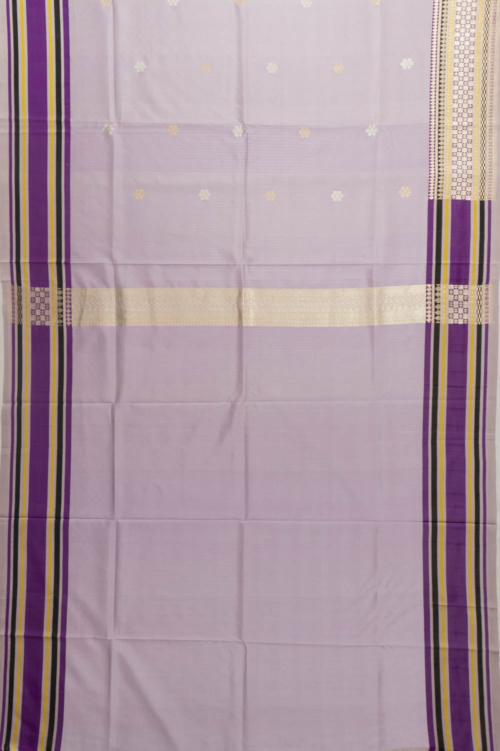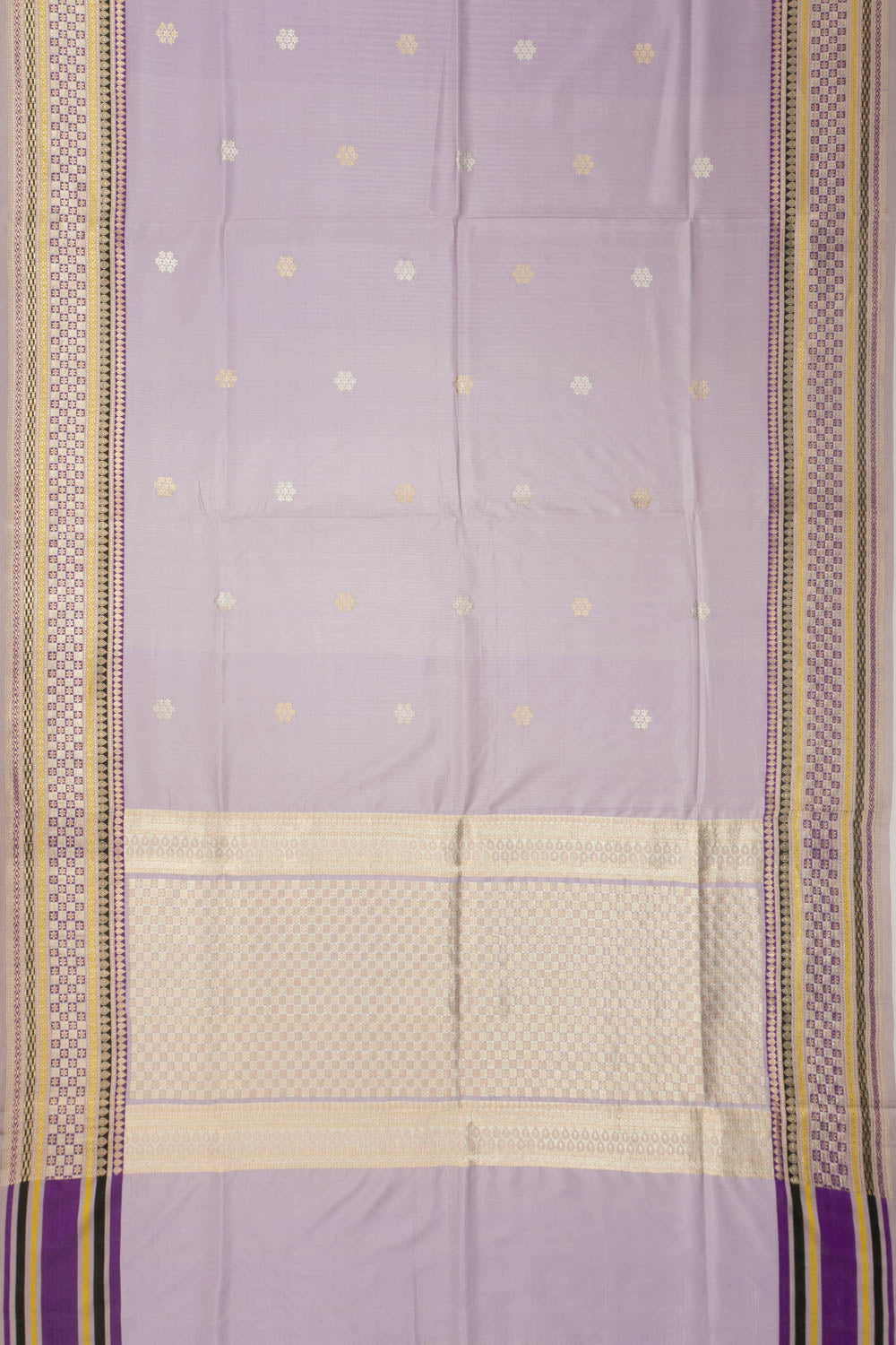 Crafted with a combination of gold zari and silver zari, the saree showcases delicate floral butta for an intricate and luxurious texture.