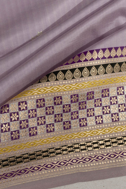 Features a self gold zari border adorned with graceful floral vine motifs, providing a soft yet rich accent.