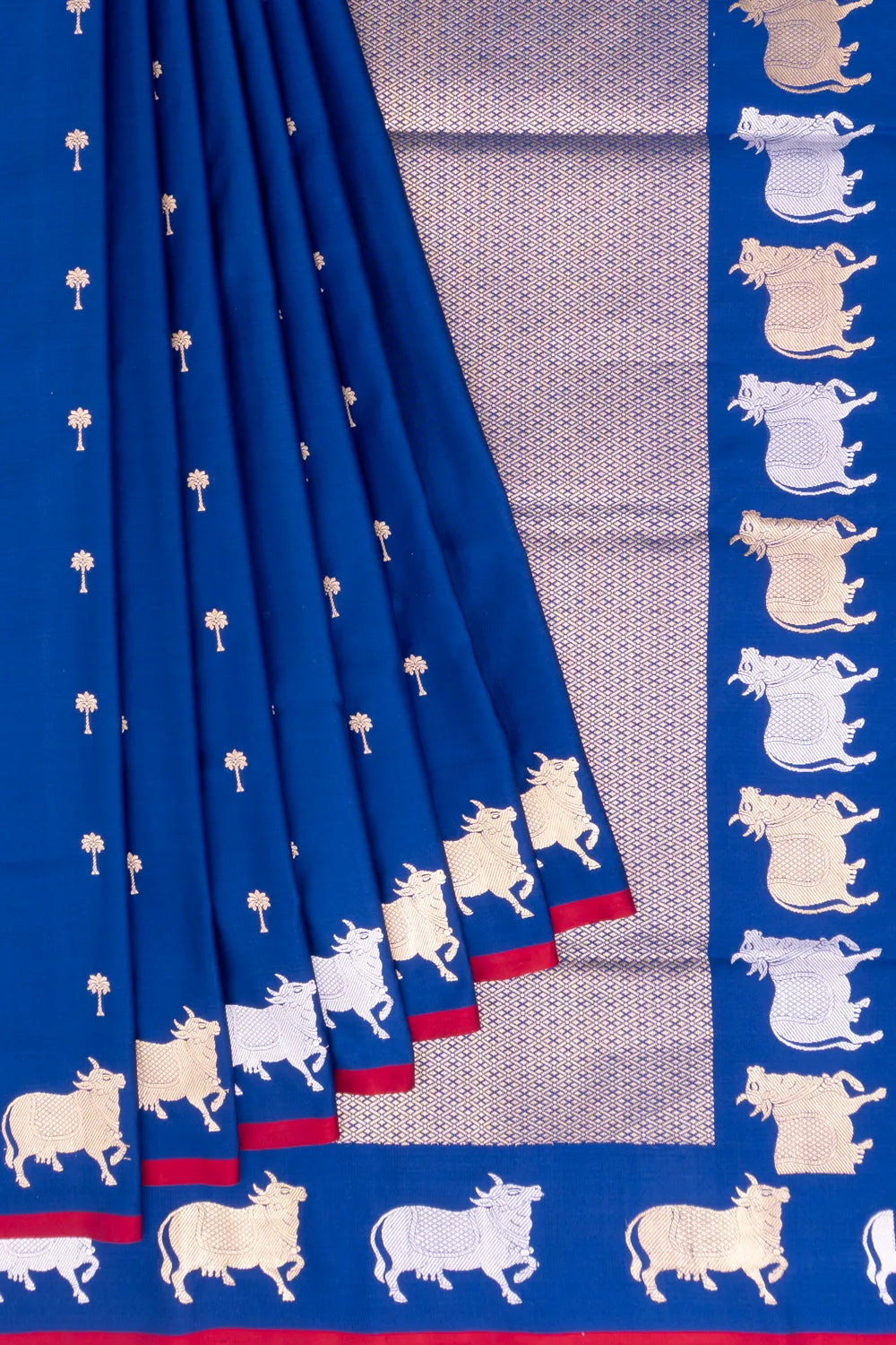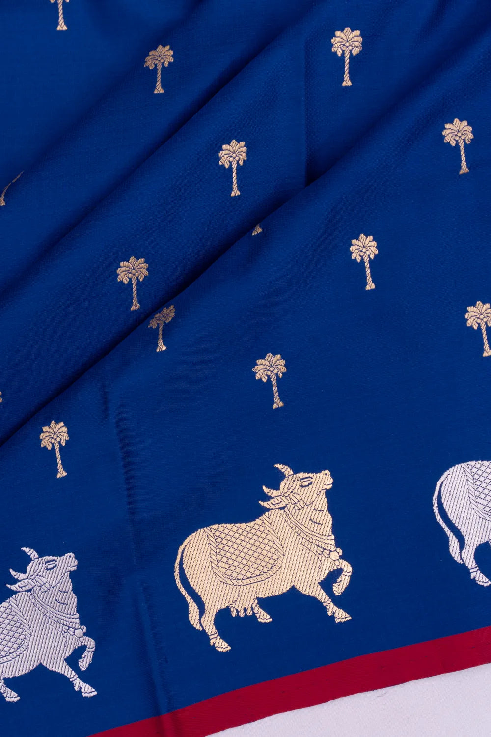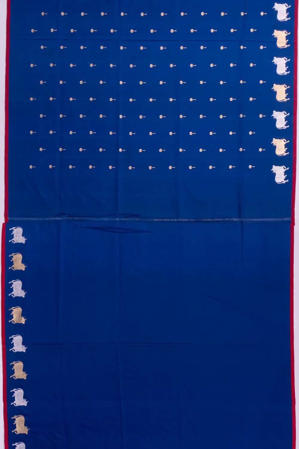 Banarasi Satin Butta Royal Blue Saree With Pichwai Border