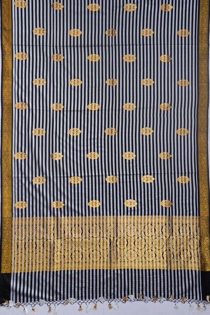 Banarasi Satin Zebra Strips And Butta Black And White Saree