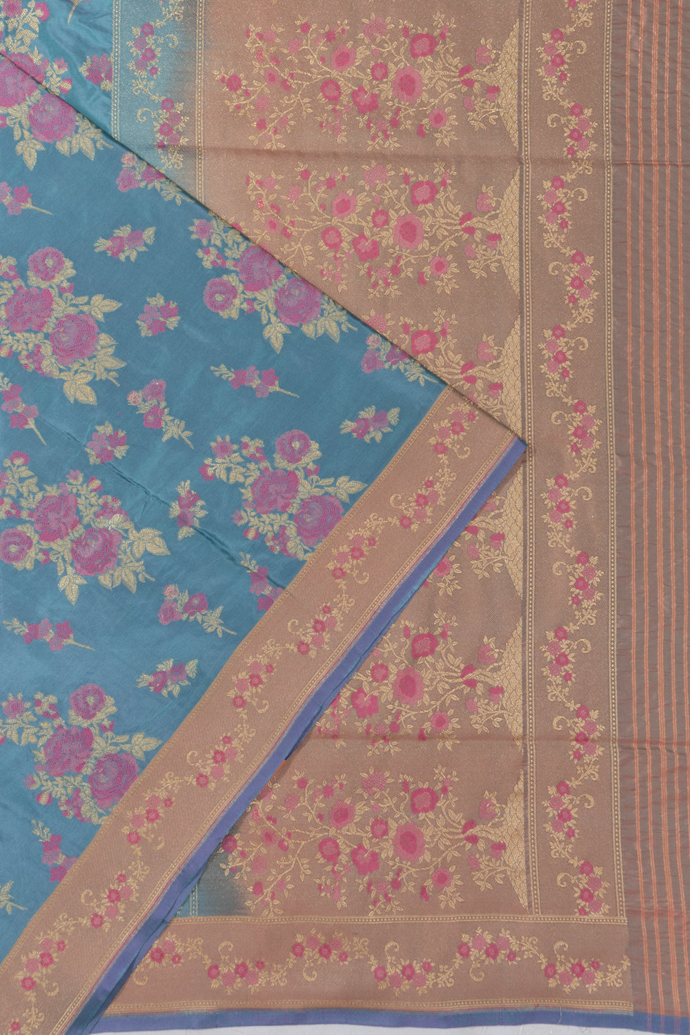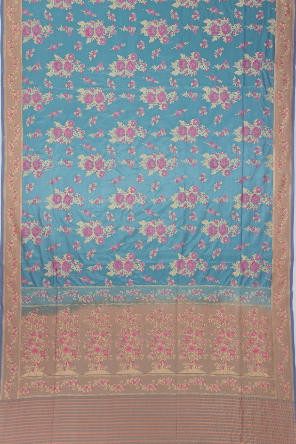 Deep blue Silk featuring detailed gold zari floral brocade, offering a classic and regal appearance.