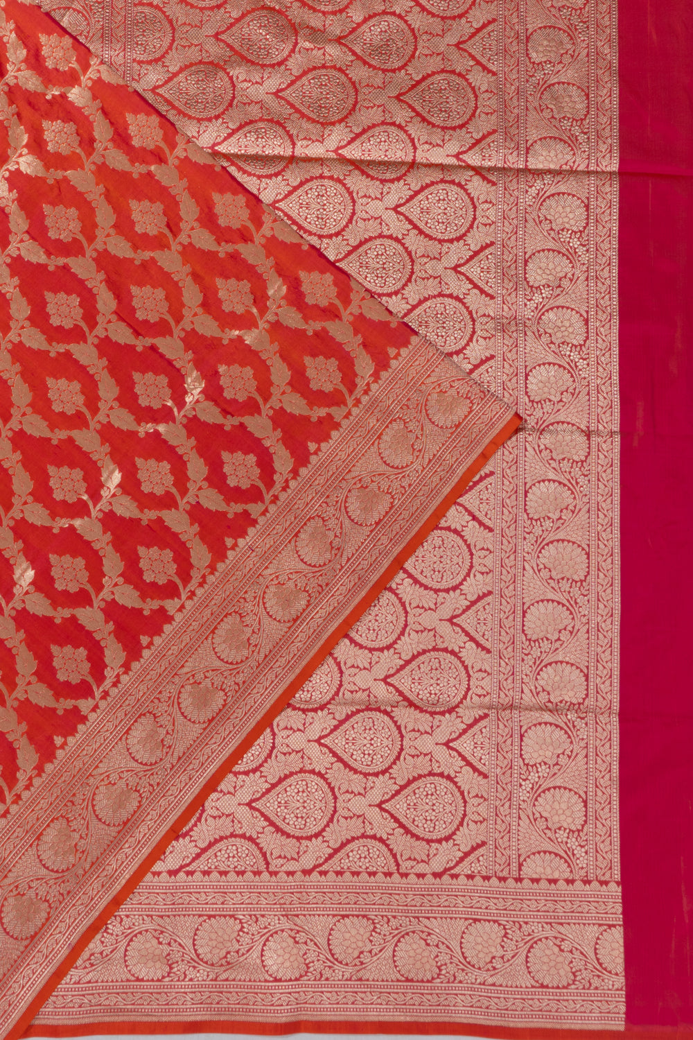 Banarasi Silk Brocade Dual Tone Pink And Orange Saree