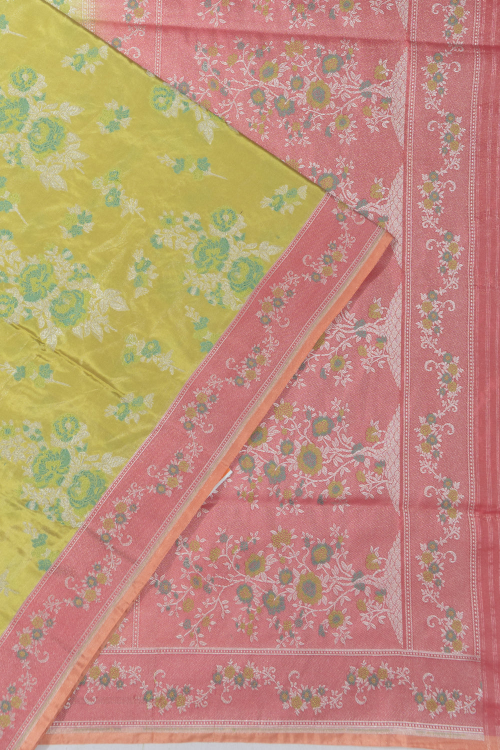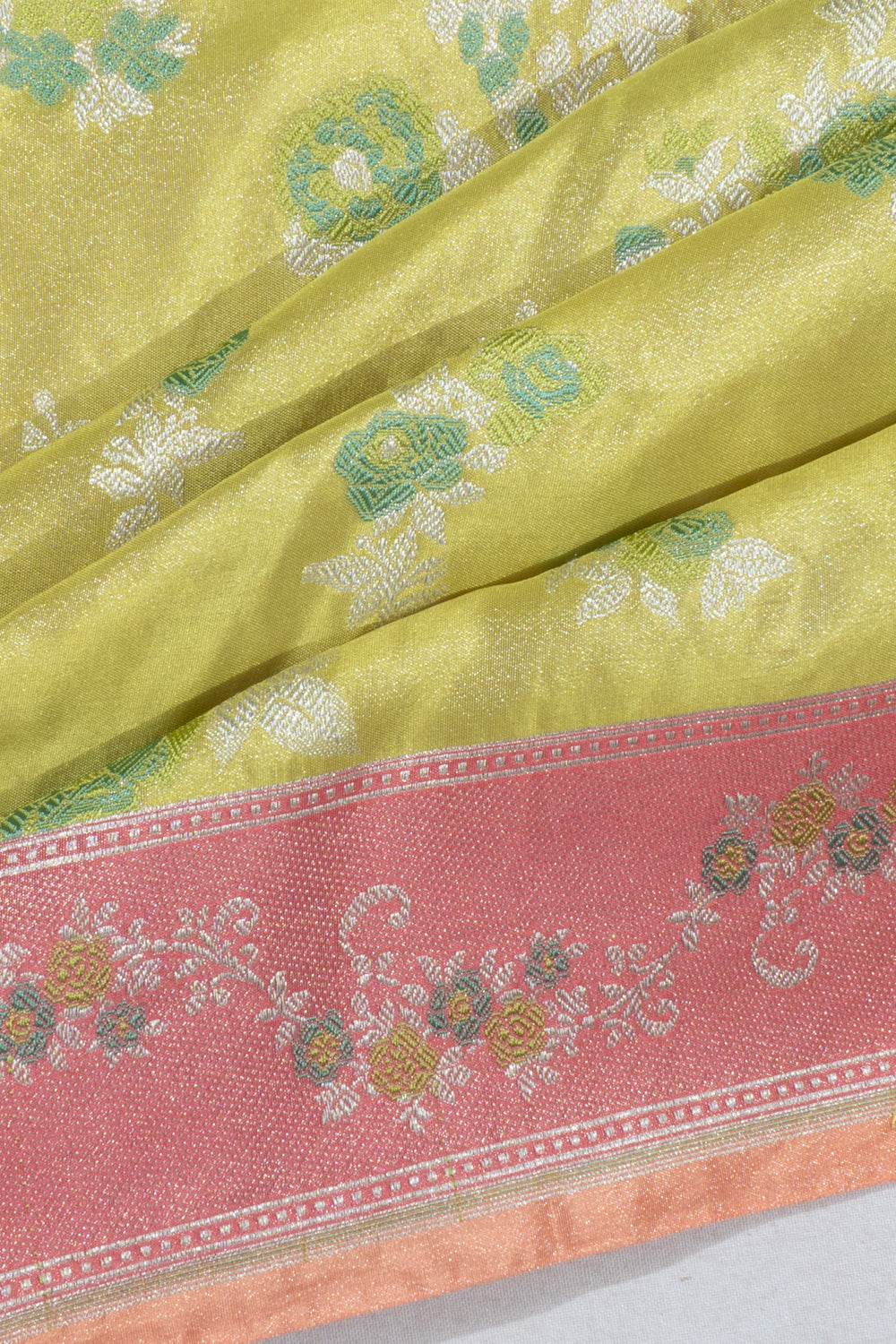 Green Silk with intricate silver zari floral brocade work that adds shimmer and elegance.