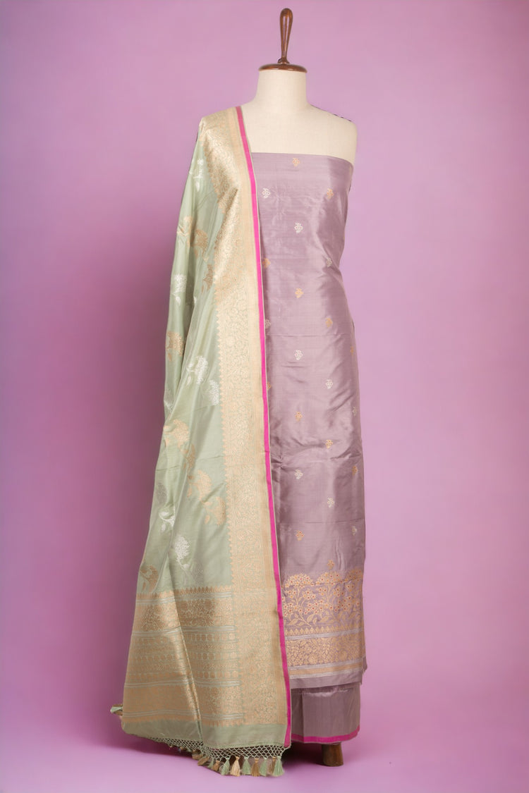 Banarasi Silk Butta Lilac Salwar Suit Set