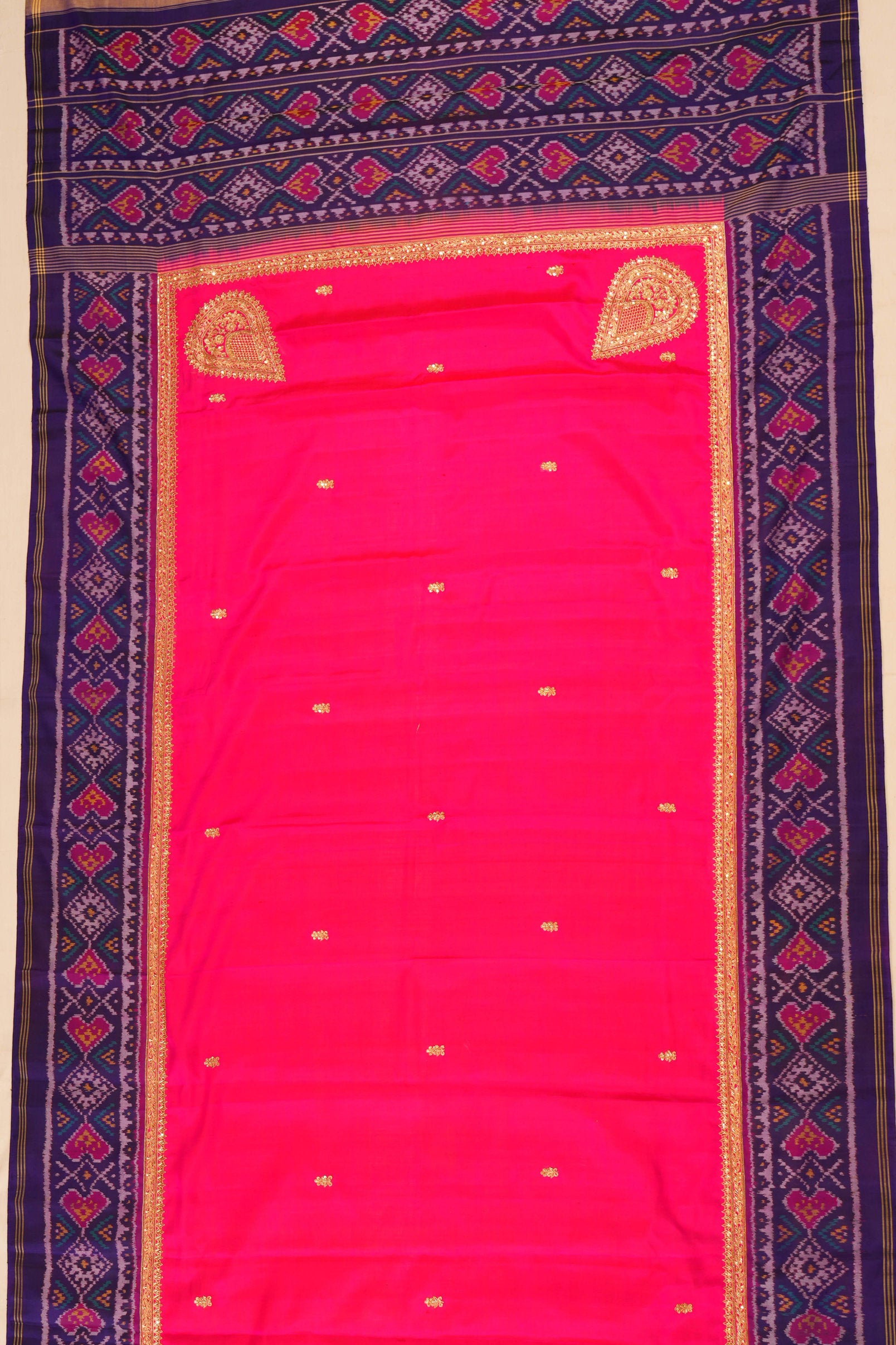 Banarasi Silk Butta Rani Pink Saree With Ikat Border And Pallu