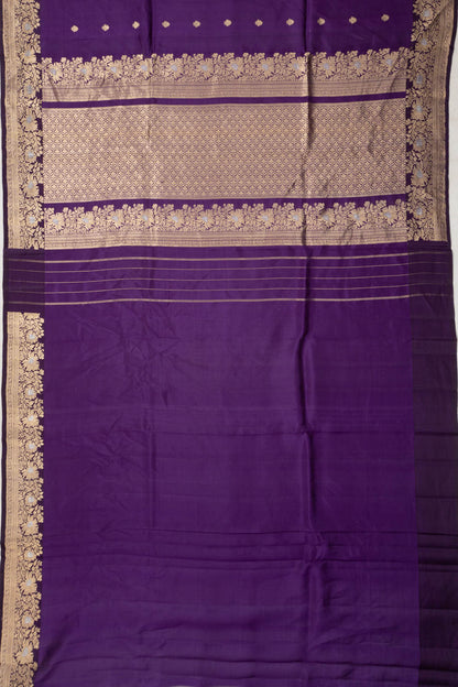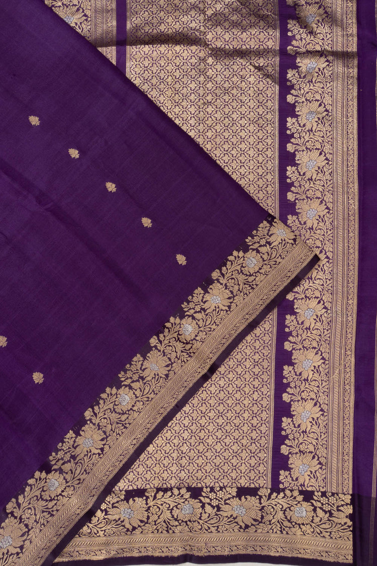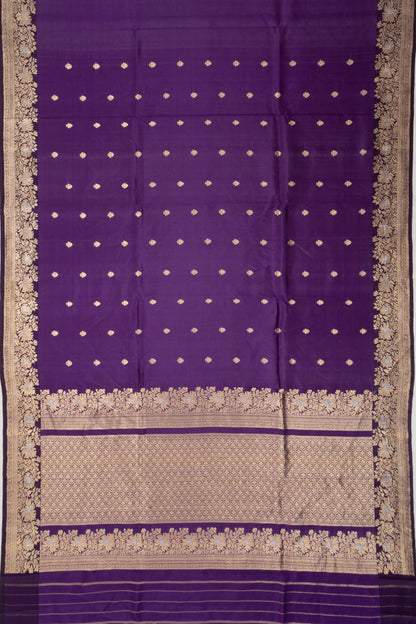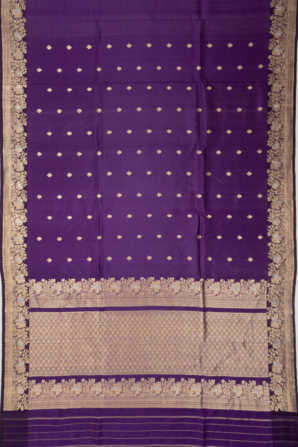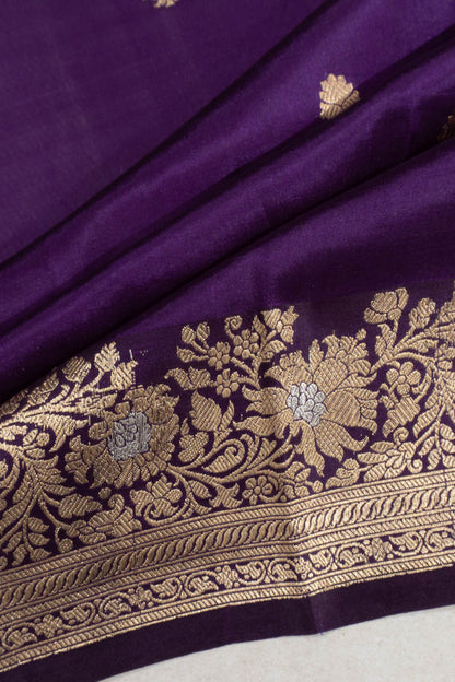 Gold zari floral butta on a rich violet base, creating a luxurious and traditional appeal.