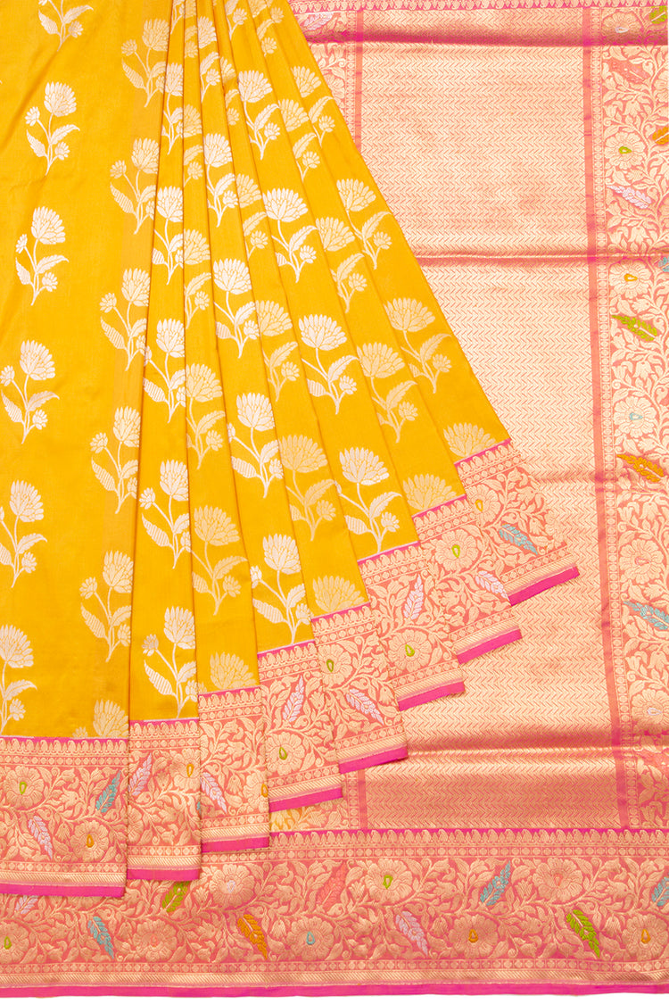 Banarasi Silk Butta Yellow Saree